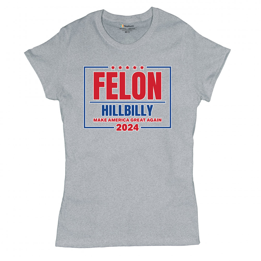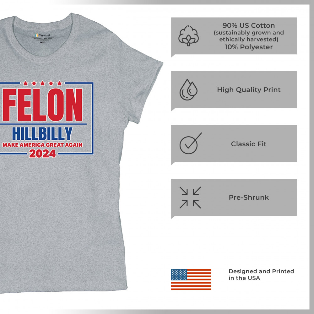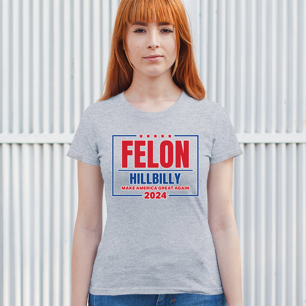 he "Felon Hillbilly 2024" design is perfect for Trump supporters, embodying conservative values and American pride.