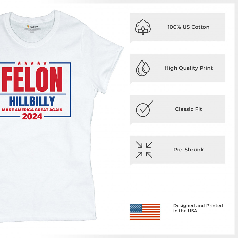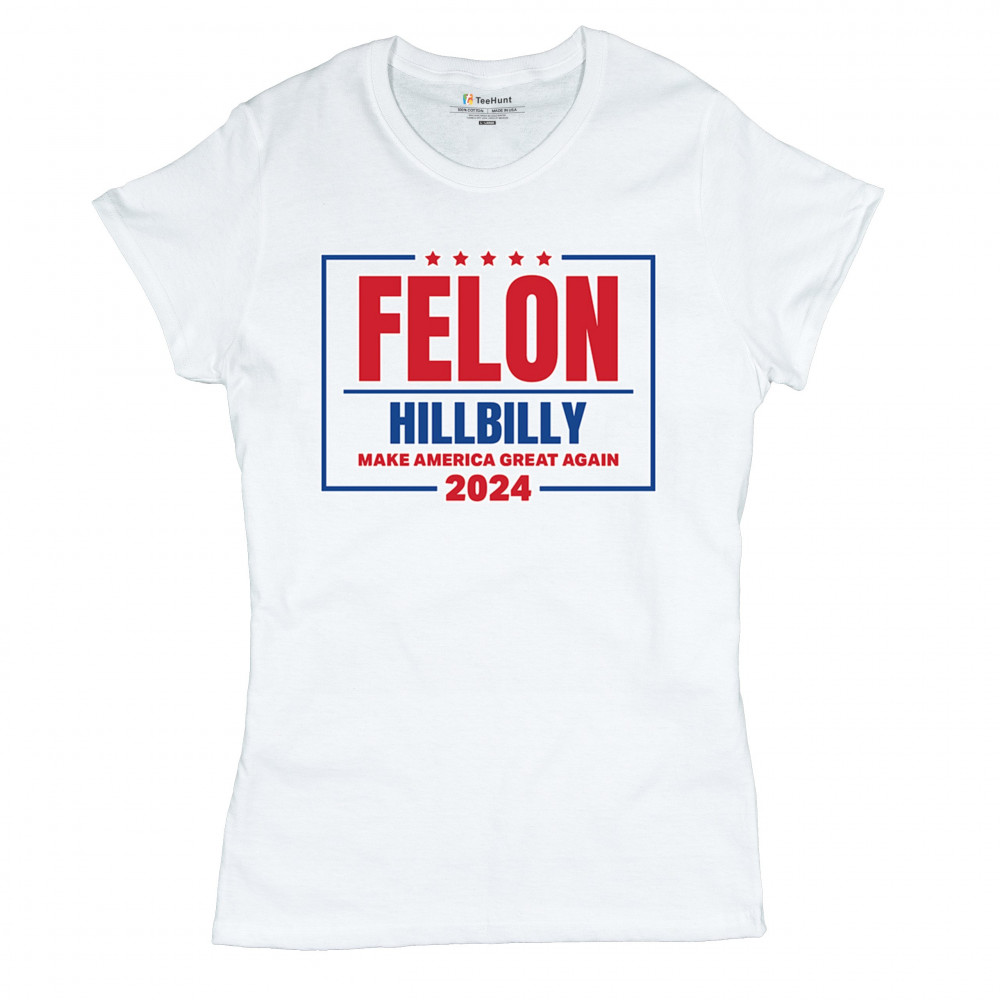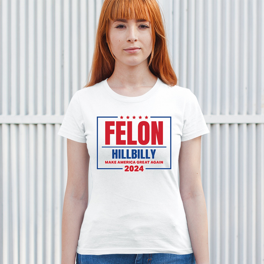 he "Felon Hillbilly 2024" design is perfect for Trump supporters, embodying conservative values and American pride.