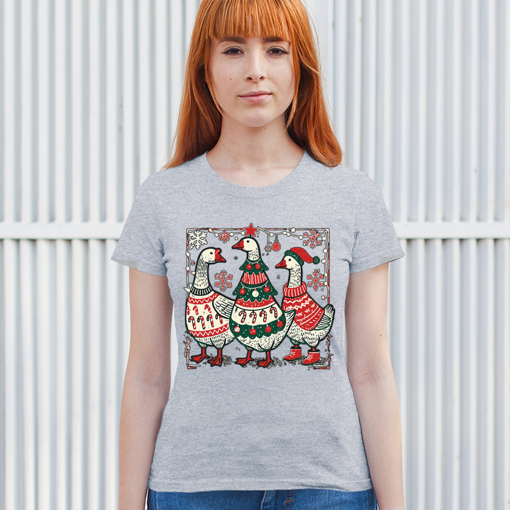 This festive goose Christmas design blends holiday humor, winter charm, and playful farm-animal personality. Featuring three geese dressed in seasonal patterns, it’s ideal for holiday parties, family gatherings, Christmas morning photos, barnyard lovers, and anyone looking for a fun seasonal graphic with cheerful holiday spirit.