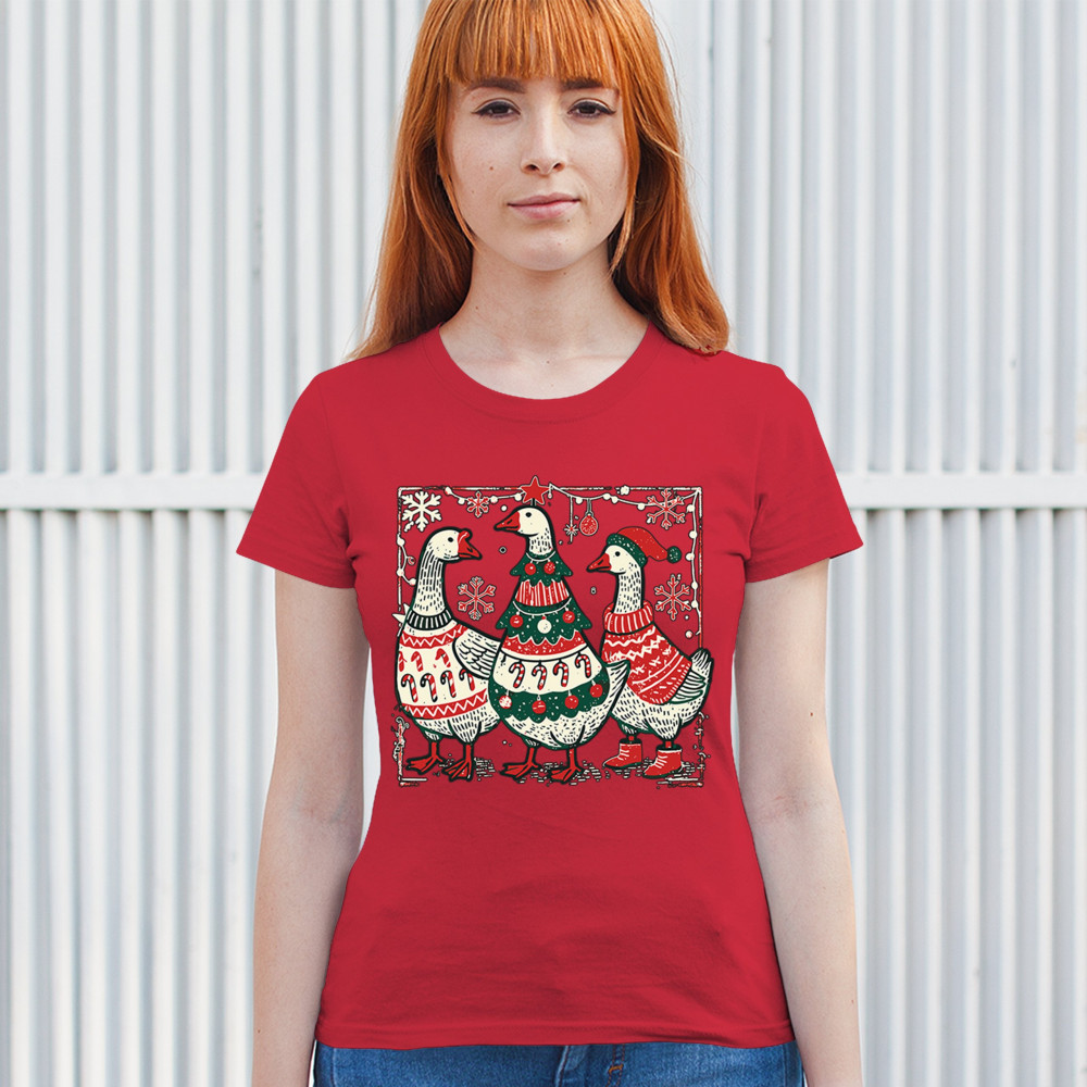 Festive goose Christmas design with playful holiday patterns, perfect for barnyard fans, cheerful gatherings, and fun seasonal celebrations.