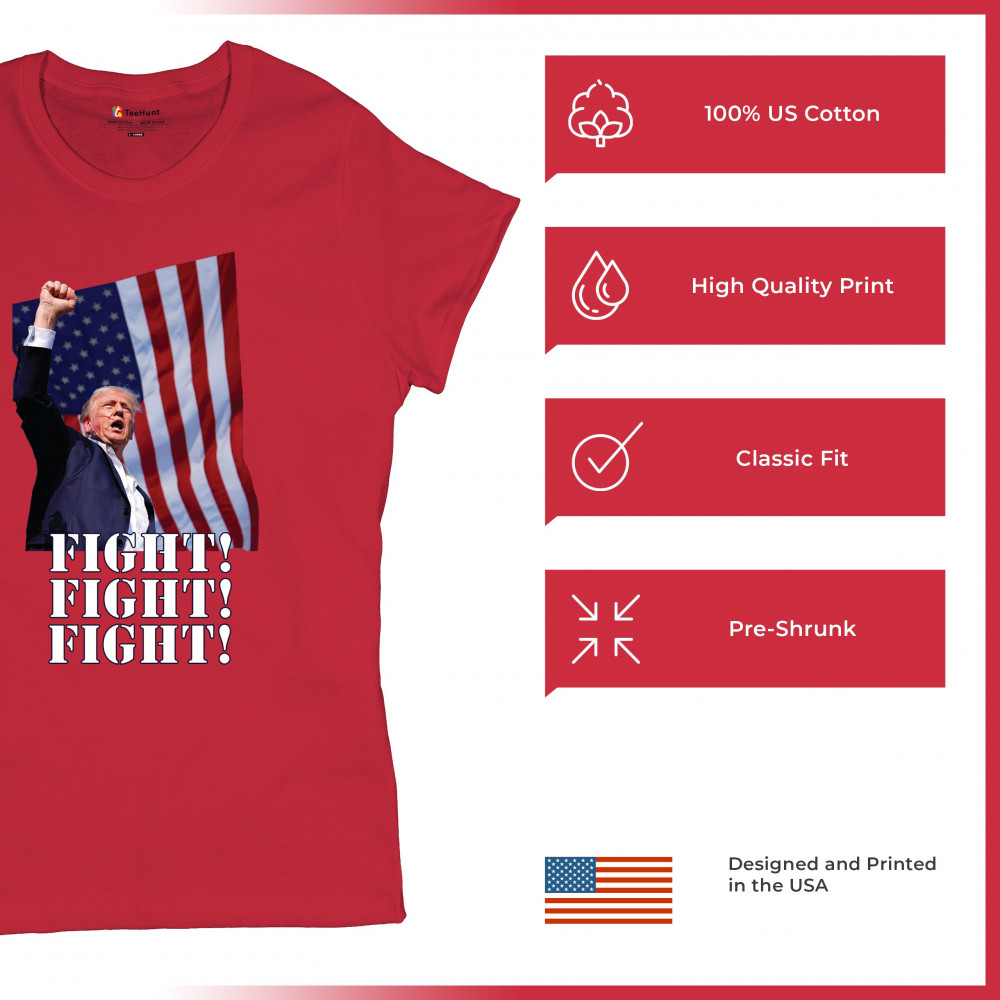 Show your support for Trump with this powerful design featuring him in front of the American flag. Perfect for rallies and daily wear.