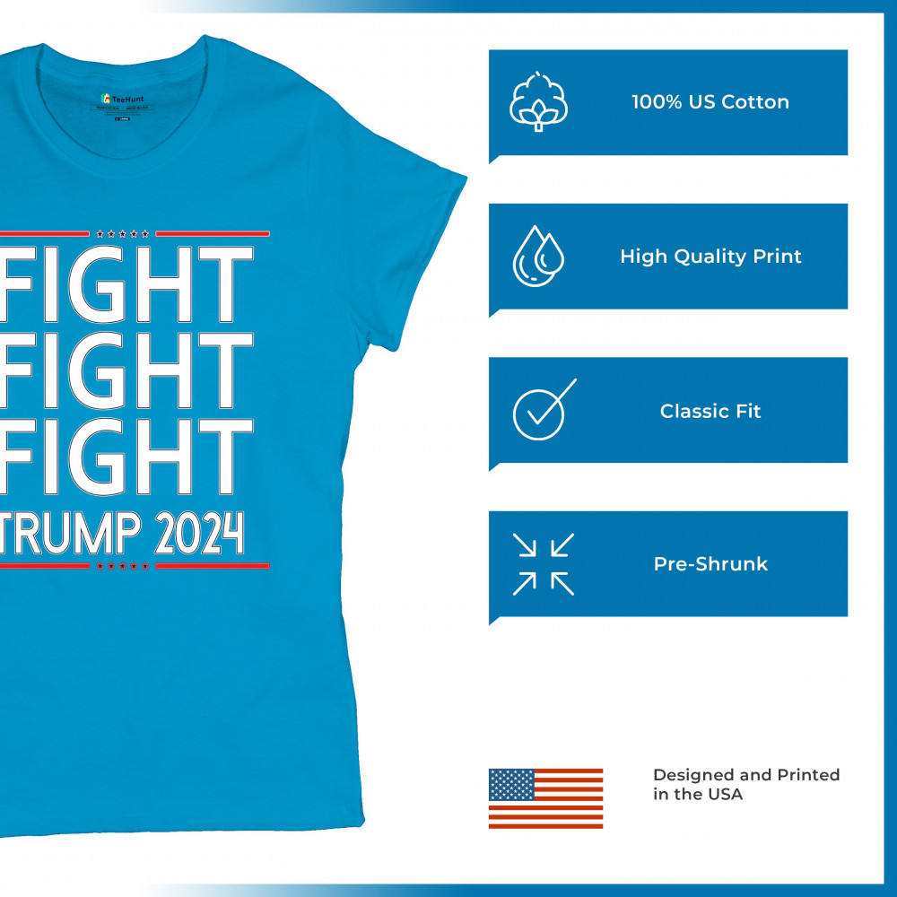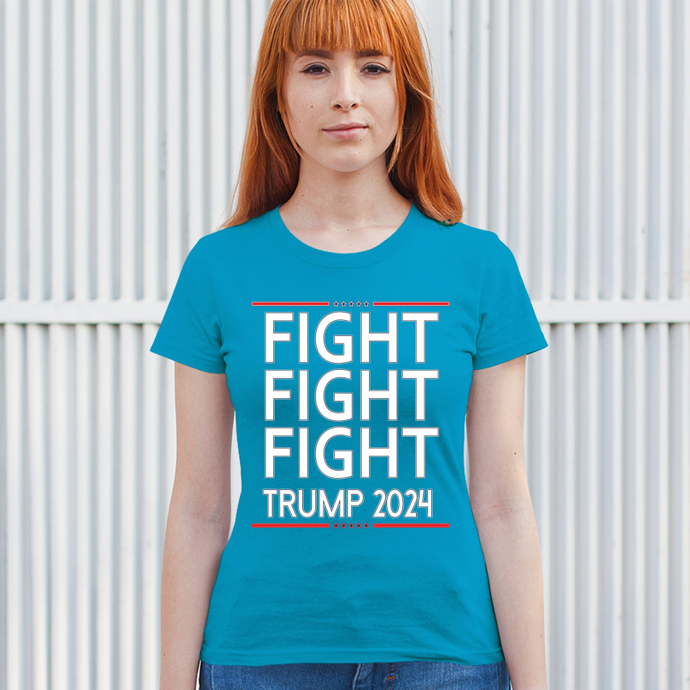 Show your Trump 2024 support with this bold "Fight Fight Fight" design. Perfect for rallies and everyday wear. Stand with America!