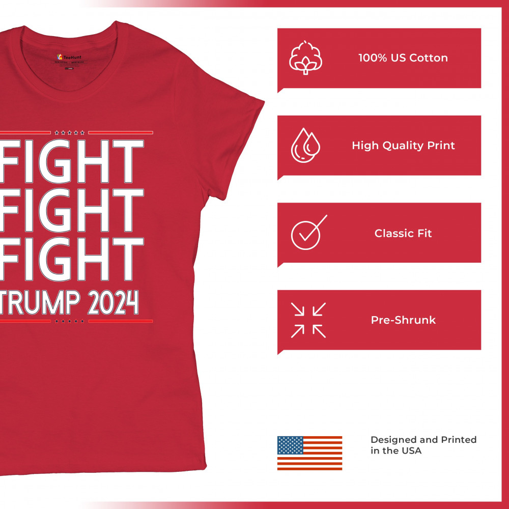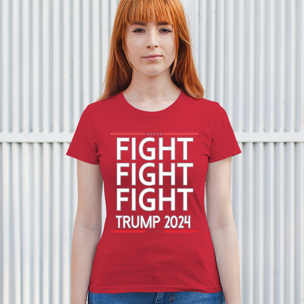 Show your Trump 2024 support with this bold "Fight Fight Fight" design. Perfect for rallies and everyday wear. Stand with America!