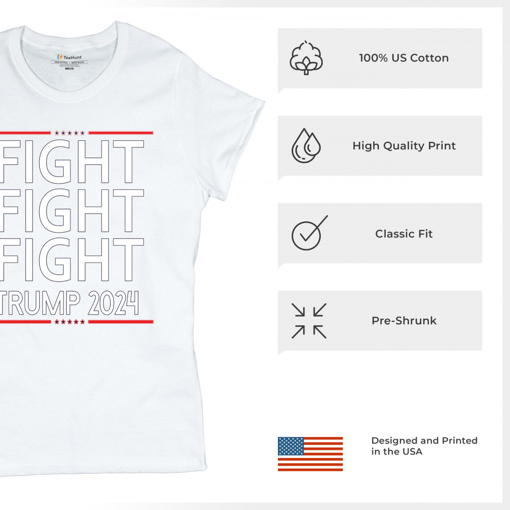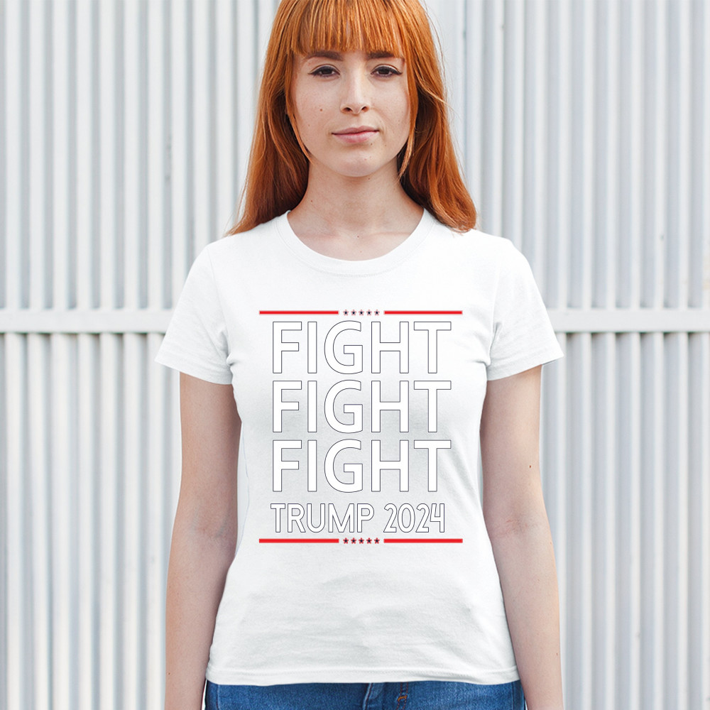 Show your Trump 2024 support with this bold "Fight Fight Fight" design. Perfect for rallies and everyday wear. Stand with America!