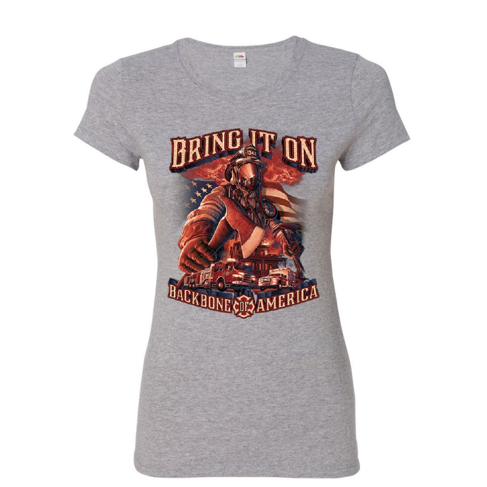 FIREFIGHTER BACKBONE OF AMERICA women's t-shirt fd fire and rescue hero shirt gray