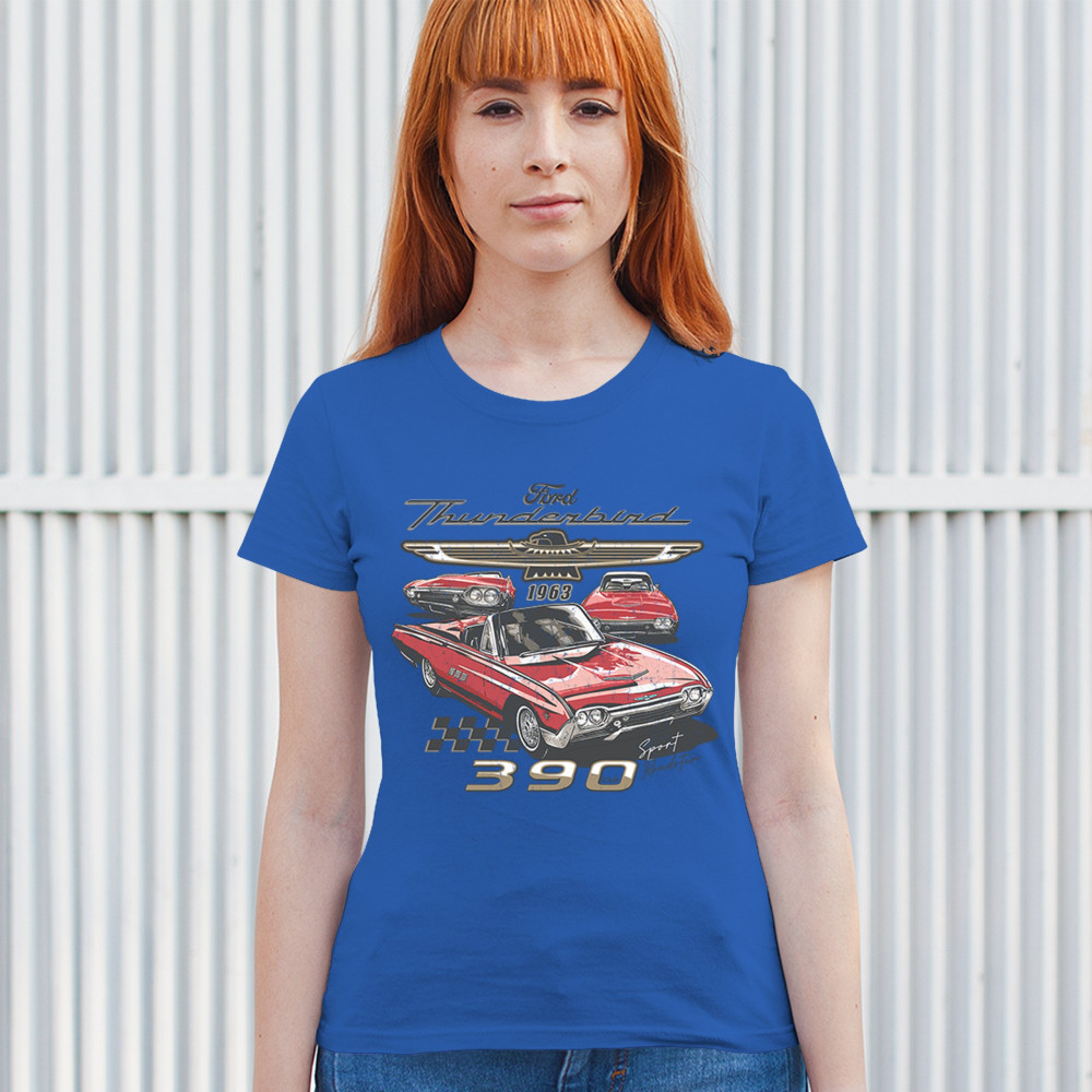 Celebrate the style and power of the 1963 Ford Thunderbird with this striking design featuring the classic 390 V8 Sport Roadster. With its unmistakable red finish and vintage detailing, this piece captures the heart of American auto history. A perfect tribute for Ford fans, car collectors, and retro cruising lovers.
