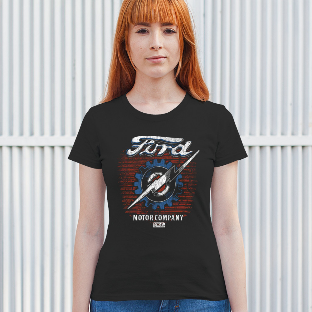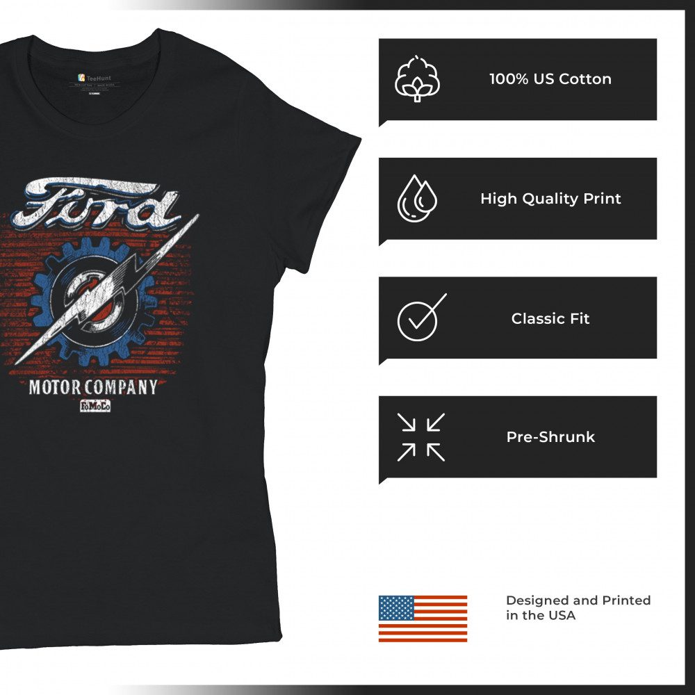 This officially licensed Ford Motor Company design showcases a distressed patriotic theme, bold lightning bolt, and vintage industrial gear emblem, symbolizing the power of American automotive innovation. Perfect for classic car lovers, muscle car enthusiasts, and Ford history fans, this design pays tribute to high-performance heritage, FoMoCo branding, and the legacy of American muscle.