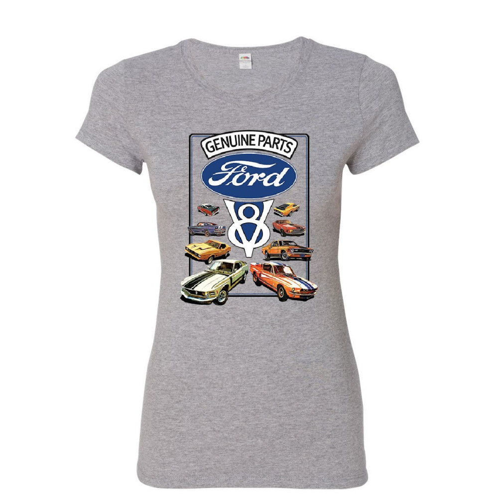 FORD GENUINE PARTS women's t-shirt american classic muscle cars v8 motor shirt gray