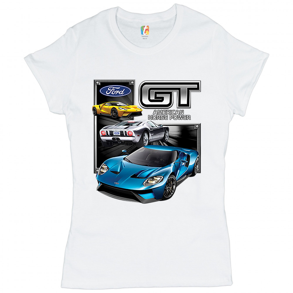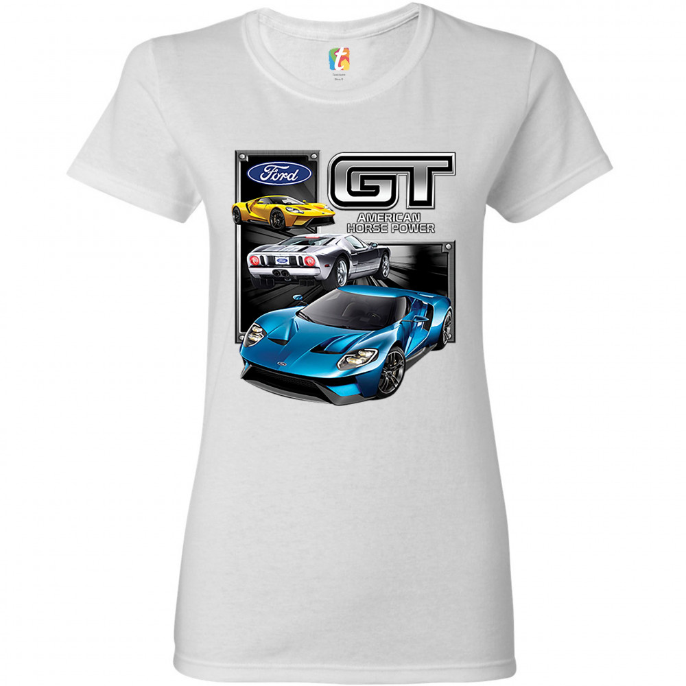 FORD GT AMERICAN HORSE POWER t-shirt sports race car licensed women's tee white