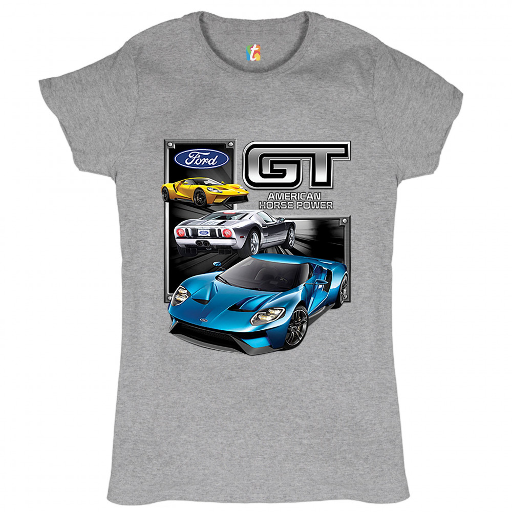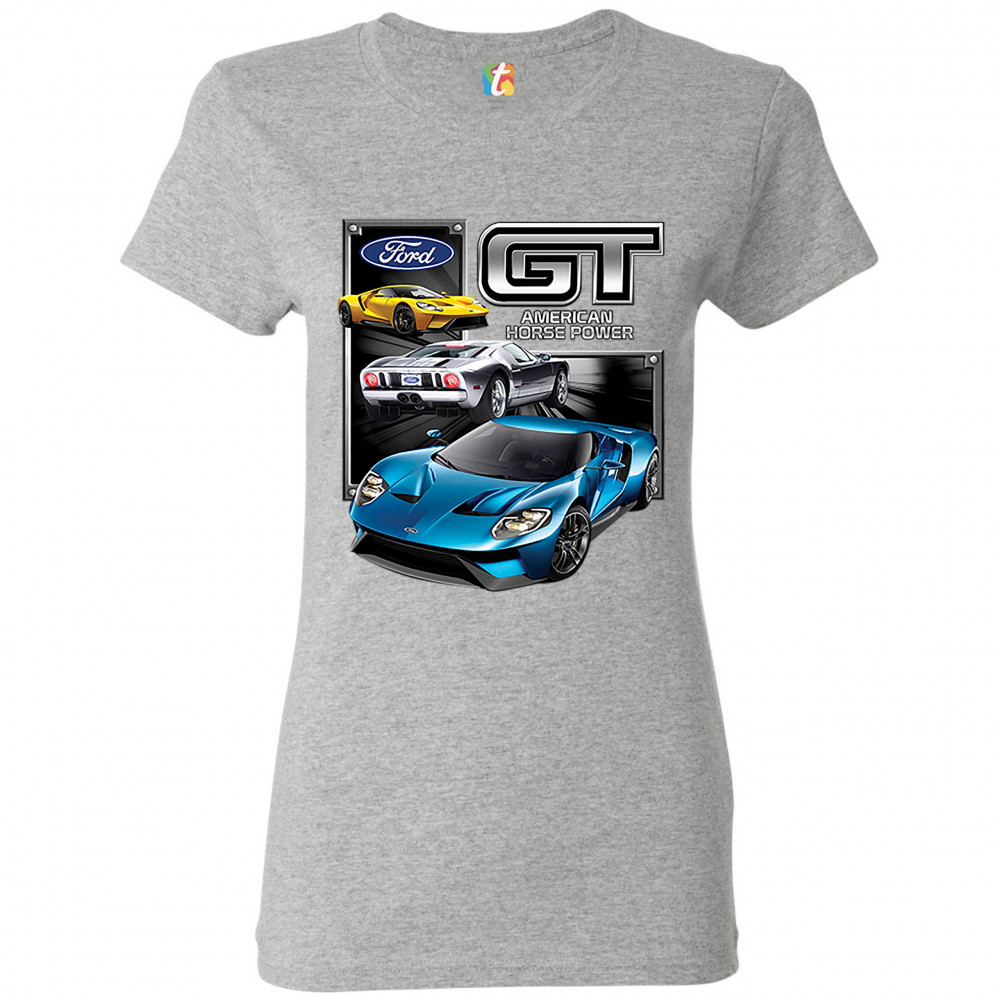 FORD GT AMERICAN HORSE POWER t-shirt sports race car licensed women's tee gray