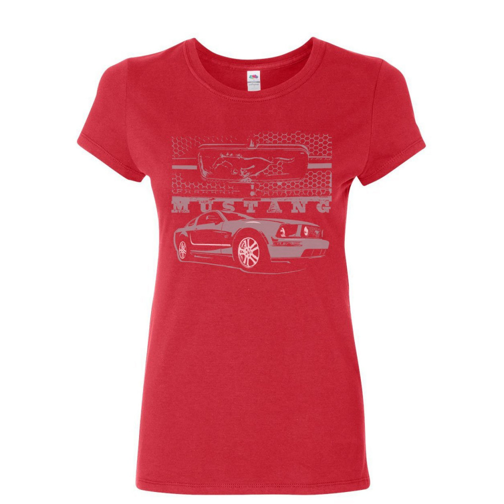 FORD HONEYCOMB GRILLE women's t-shirt mustang silhouette us muscle car shirt red