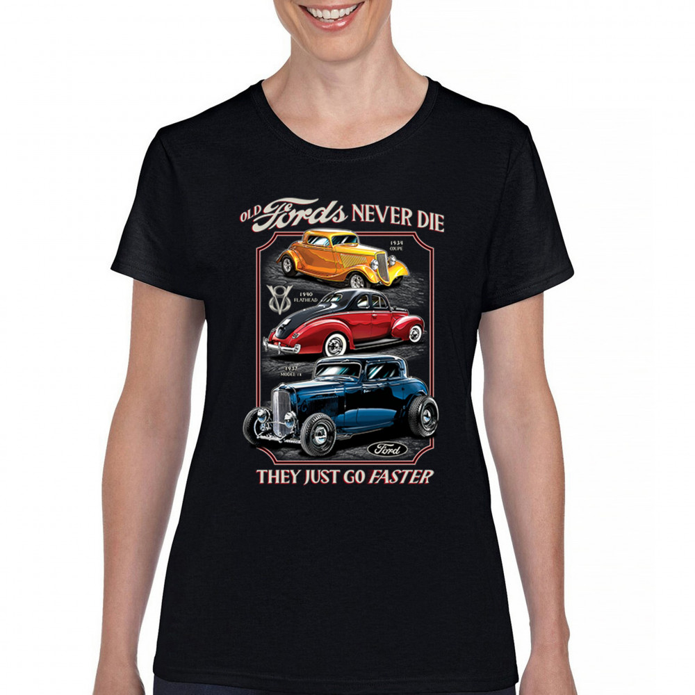 This retro design features three legendary Ford hot rods from the 1930s and 1940s, boldly rendered in a tribute to American street rod history. Ideal for muscle car lovers, vintage performance fans, and classic car culture enthusiasts who appreciate timeless speed. A must-have for cruise nights, garage hangs, and car shows.
