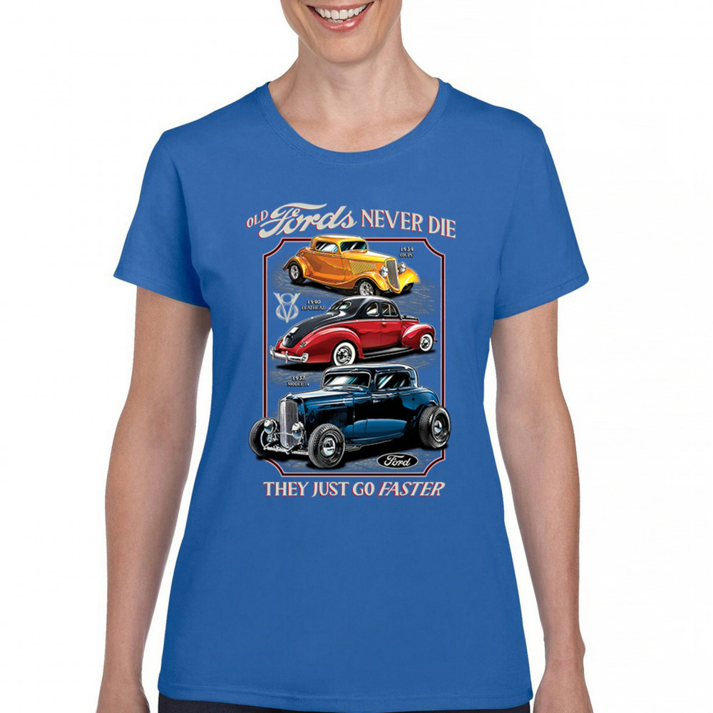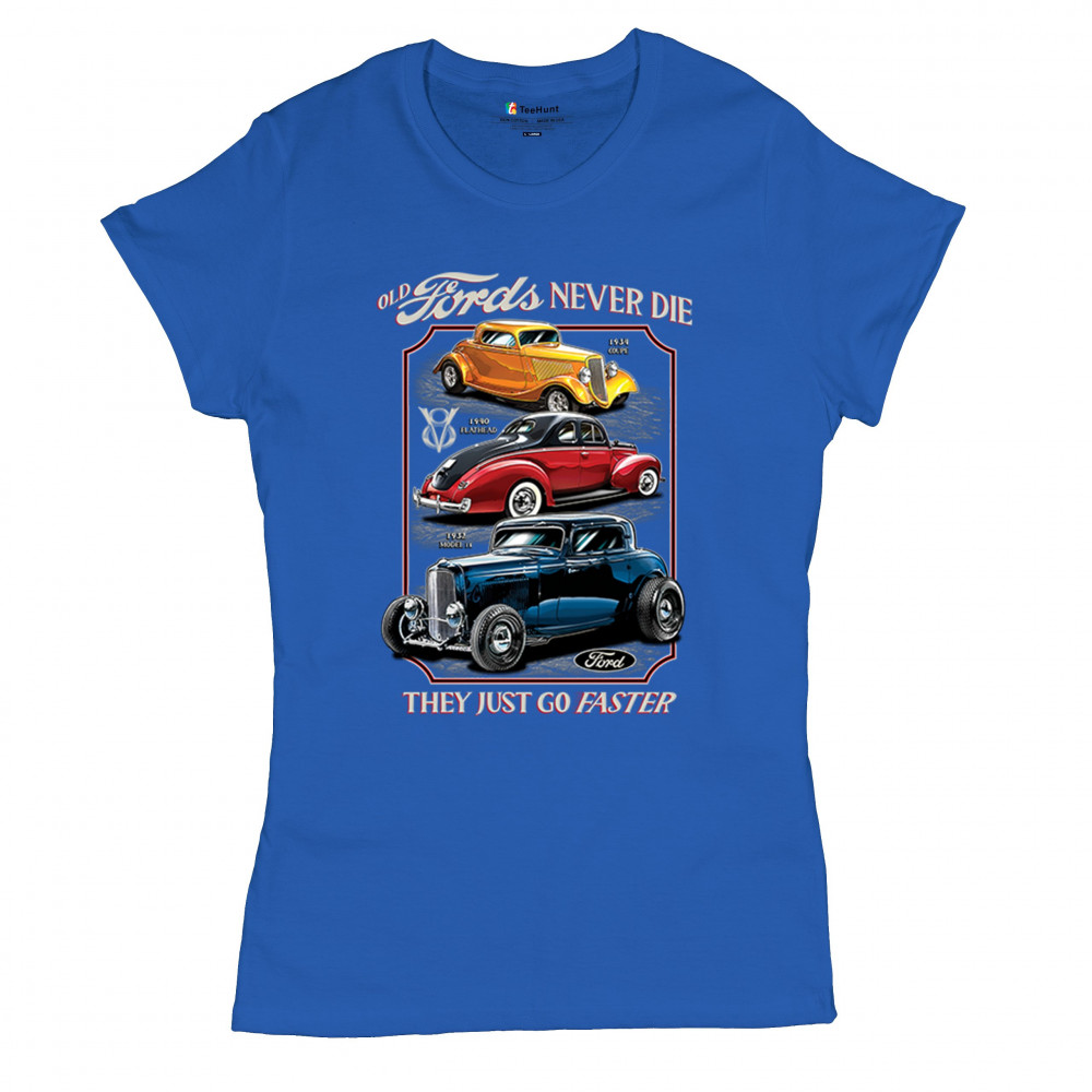 This retro design features three legendary Ford hot rods from the 1930s and 1940s, boldly rendered in a tribute to American street rod history. Ideal for muscle car lovers, vintage performance fans, and classic car culture enthusiasts who appreciate timeless speed. A must-have for cruise nights, garage hangs, and car shows.
