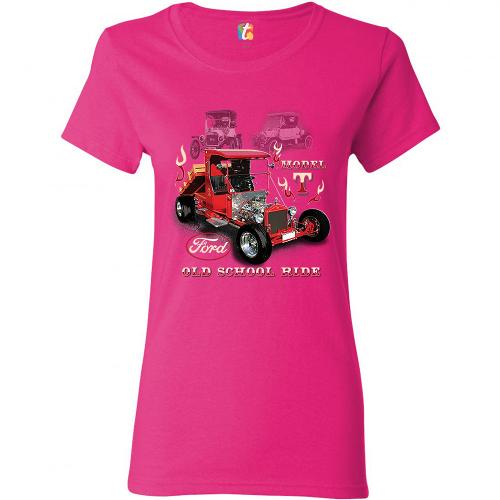 A print featuring a Ford Model T modified as a hot rod. The are also two transparent pictures of original T Models in the background. The print features the Ford logo and says: "Model T, Old School Ride". A great choice for anyone who is a fan of old sch