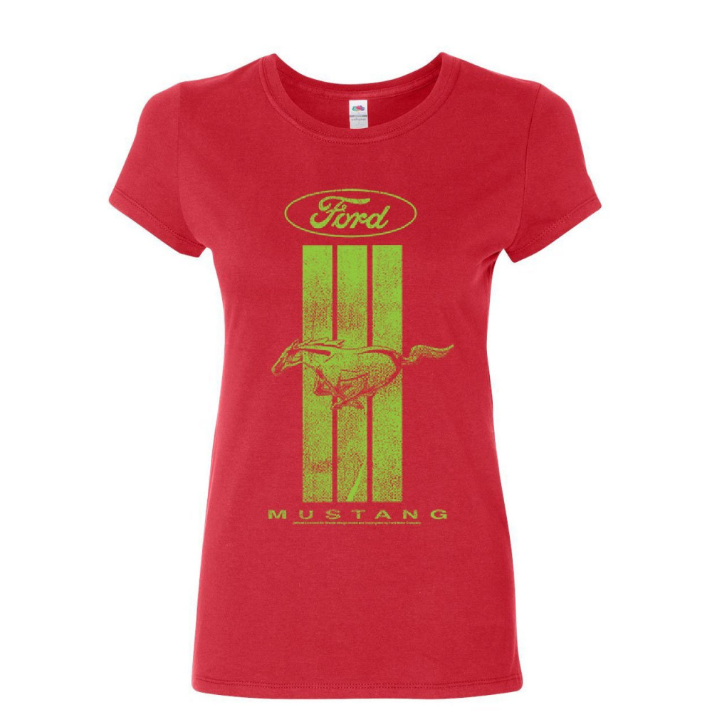 FORD MUSTANG GREEN STRIPE women's t-shirt classic american muscle car shirt red
