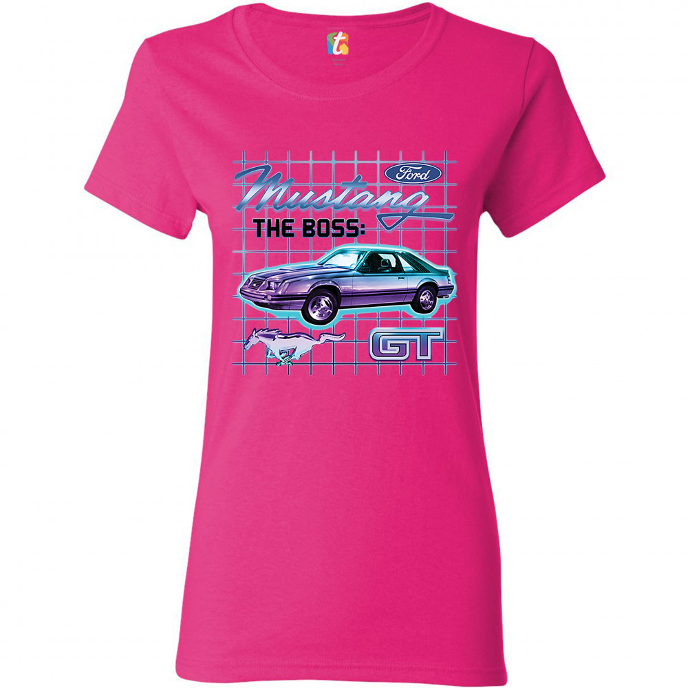 FORD MUSTANG GT THE BOSS t-shirt vintage neon car retro licensed women's tee pink
