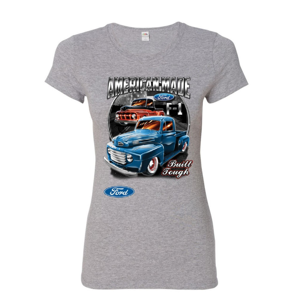FORD PICKUP TRUCKS F1 women's t-shirt american made hot rod built tough shirt gray