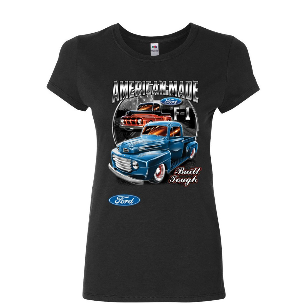 FORD PICKUP TRUCKS F1 women's t-shirt american made hot rod built tough shirt black