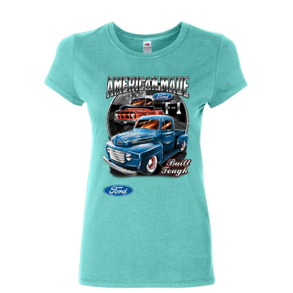 FORD PICKUP TRUCKS F1 women's t-shirt american made hot rod built tough shirt light blue