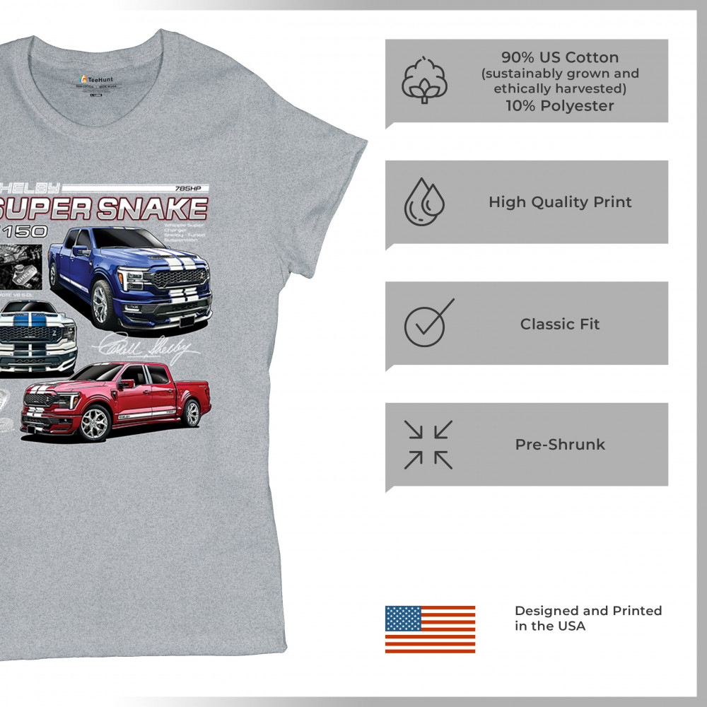 Ford Shelby Super Snake F-150 design featuring 785HP supercharged V8, Shelby pickup heritage, Shelby American truck power, and off-road muscle.