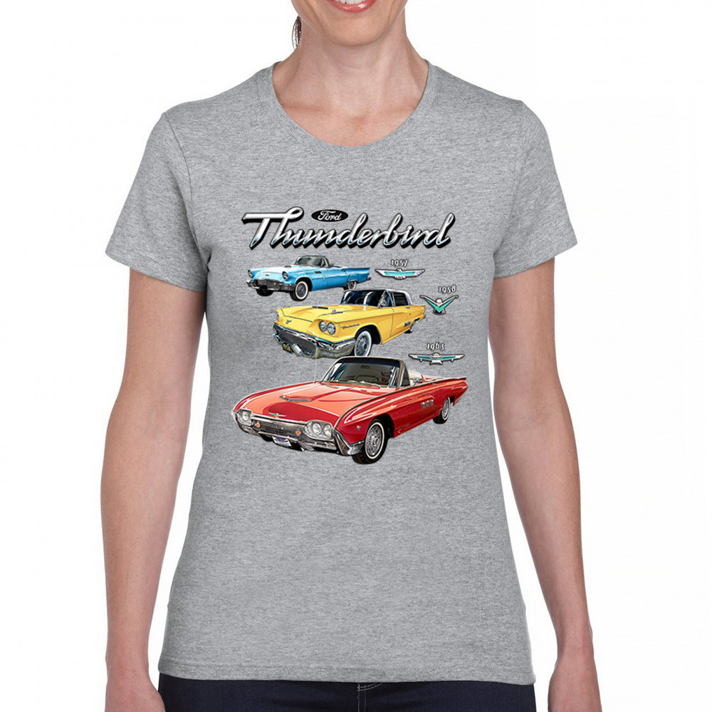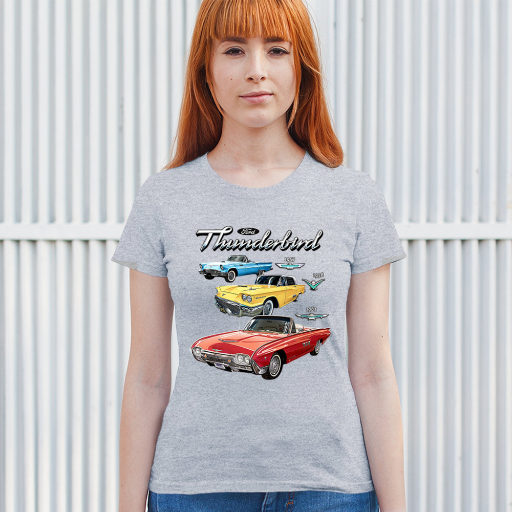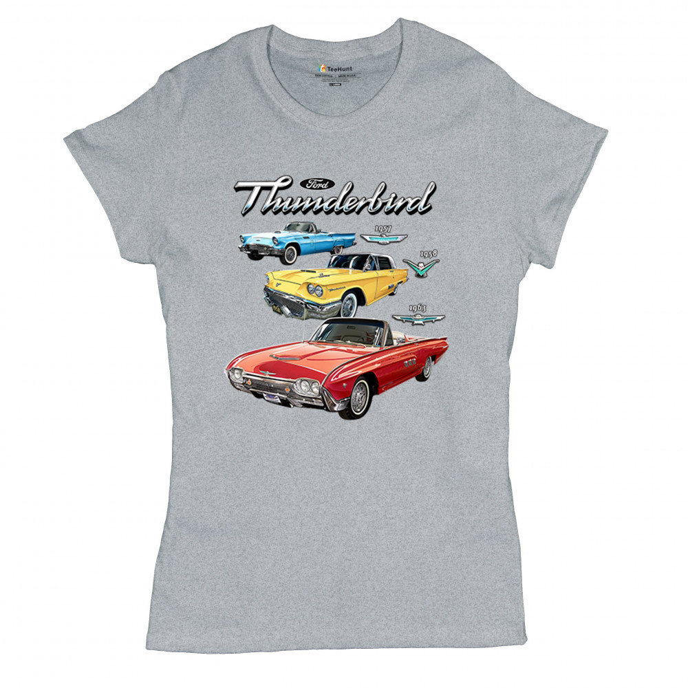 Iconic Ford Thunderbird design with 1957, 1958, and 1963 models. A vintage tribute for car collectors and American muscle fans.
