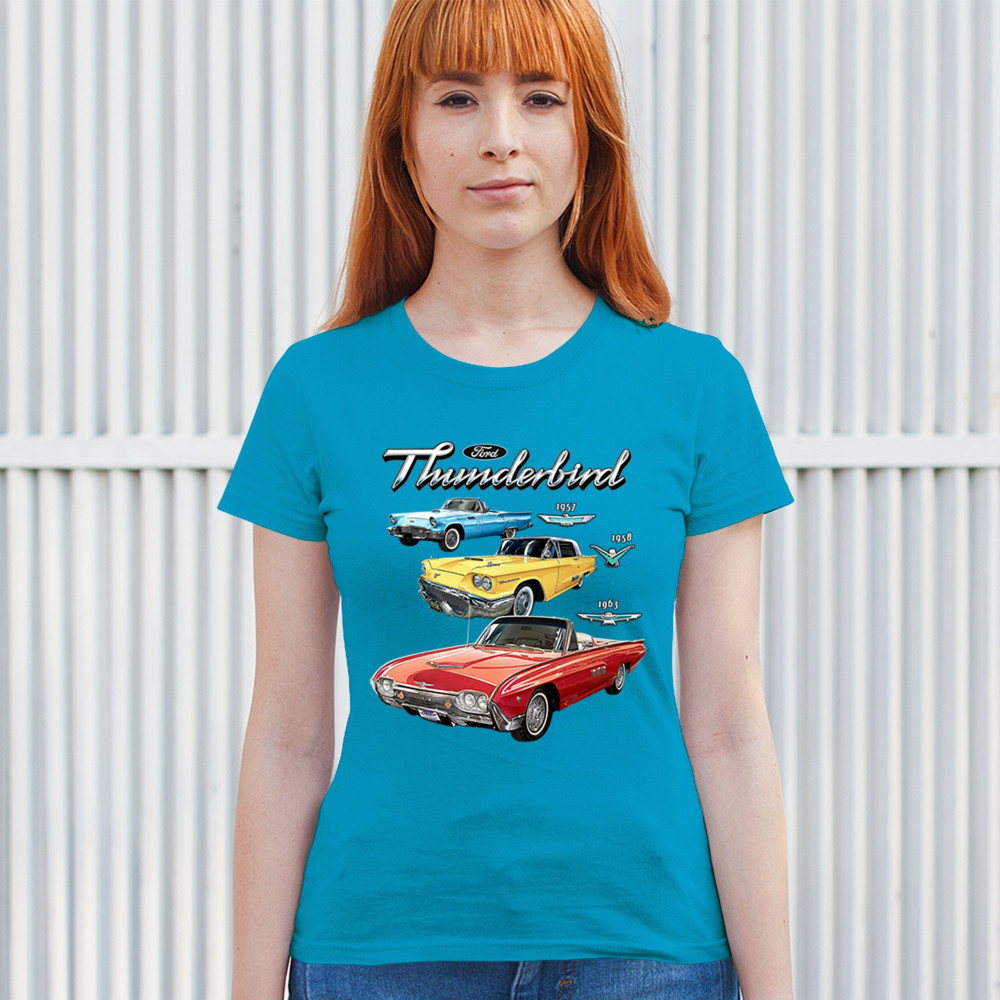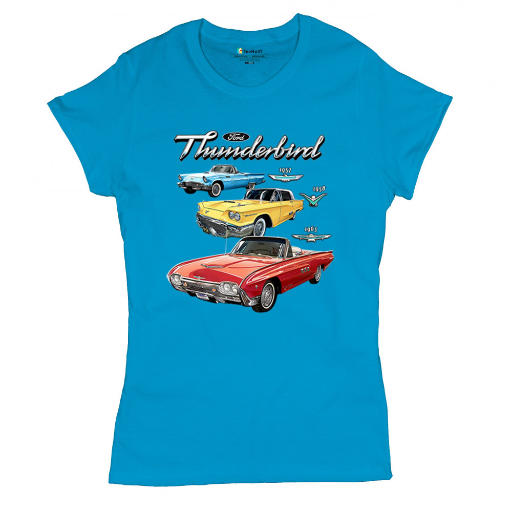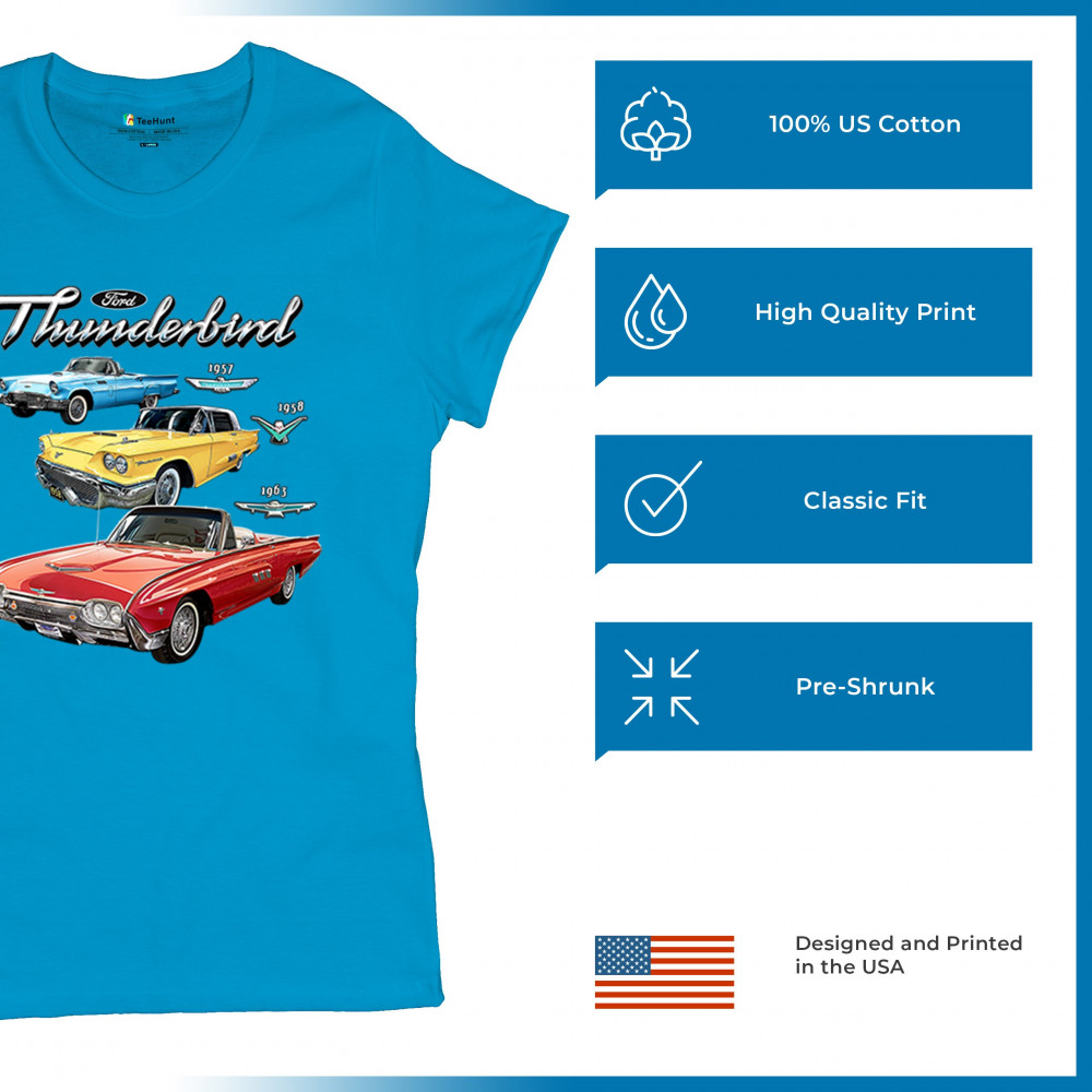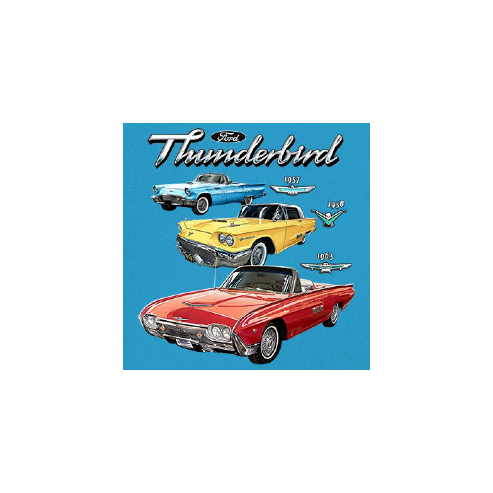 Iconic Ford Thunderbird design with 1957, 1958, and 1963 models. A vintage tribute for car collectors and American muscle fans.