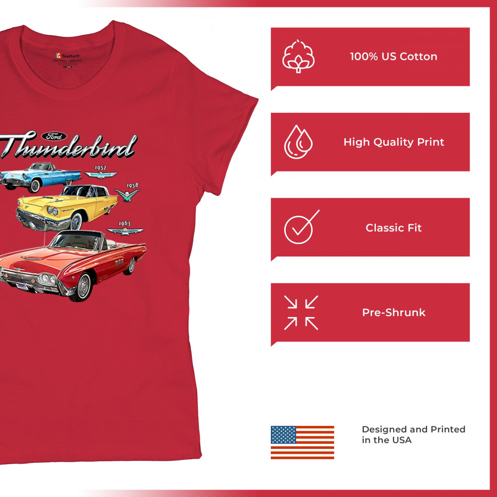 Iconic Ford Thunderbird design with 1957, 1958, and 1963 models. A vintage tribute for car collectors and American muscle fans.