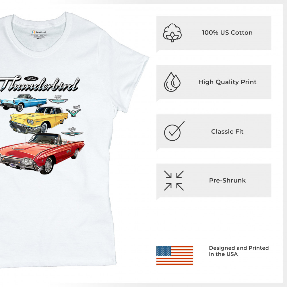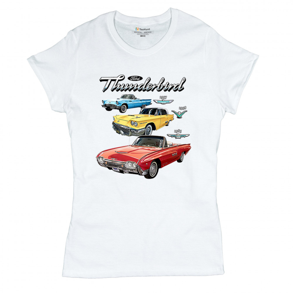 Iconic Ford Thunderbird design with 1957, 1958, and 1963 models. A vintage tribute for car collectors and American muscle fans.