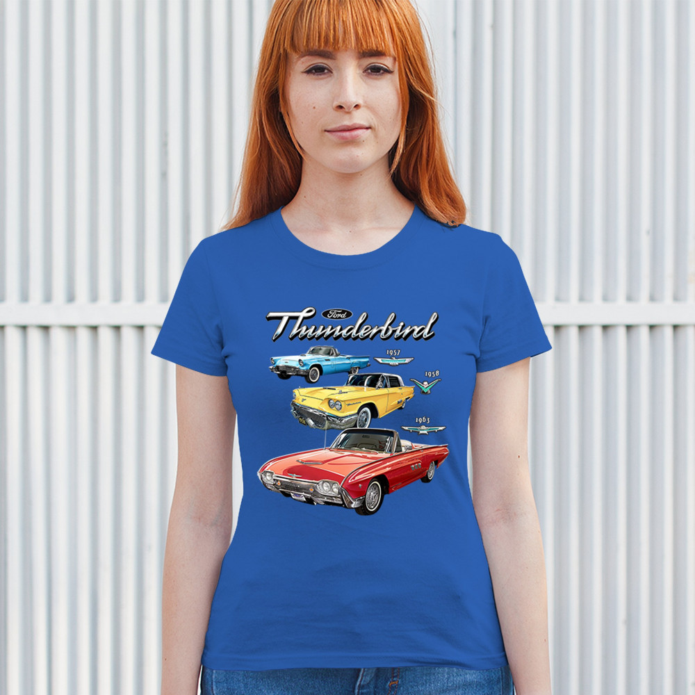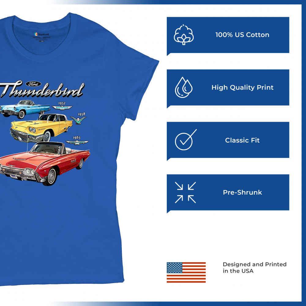 Iconic Ford Thunderbird design with 1957, 1958, and 1963 models. A vintage tribute for car collectors and American muscle fans.