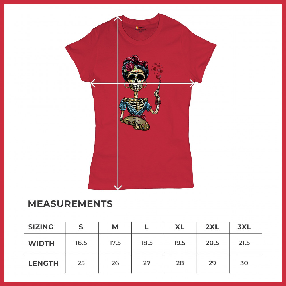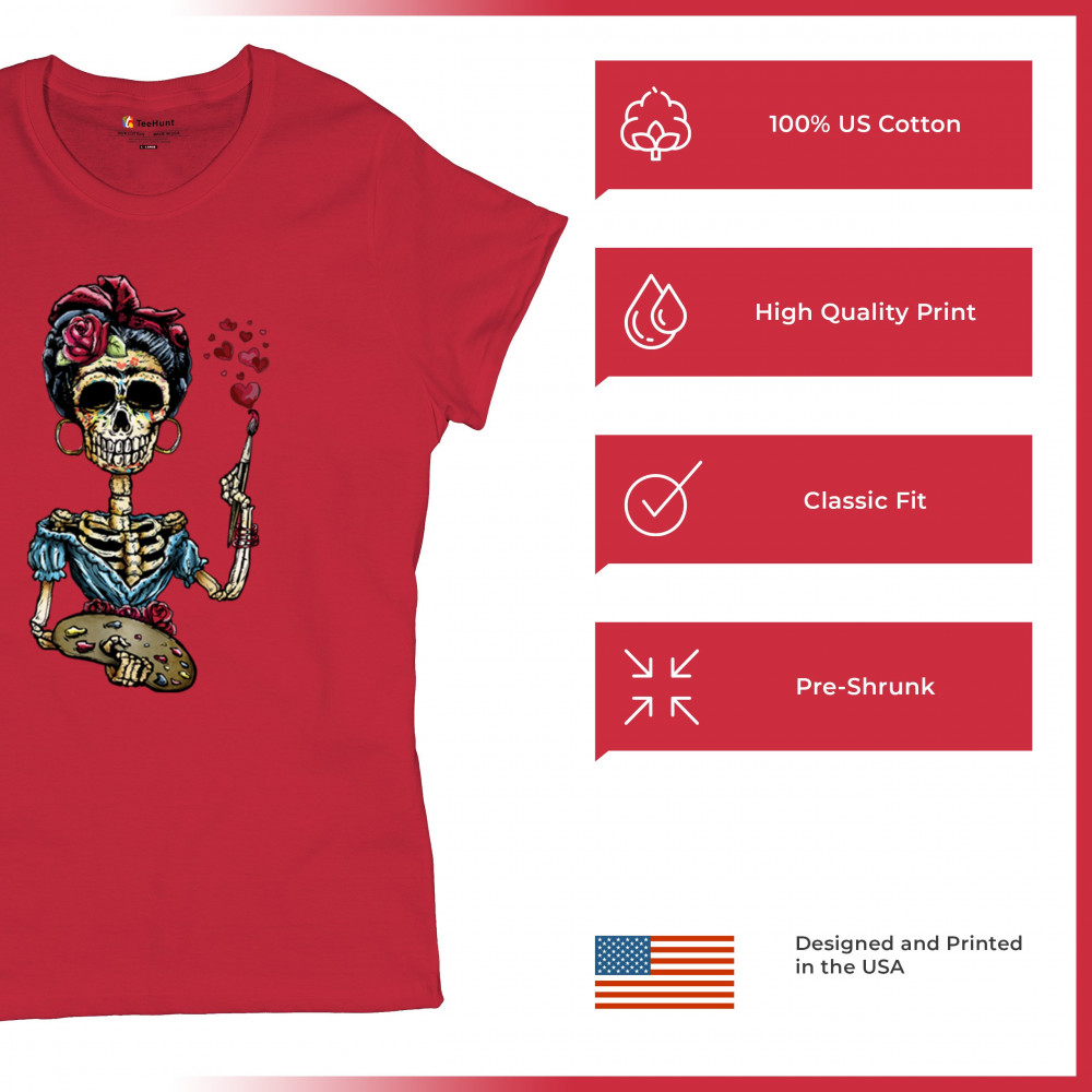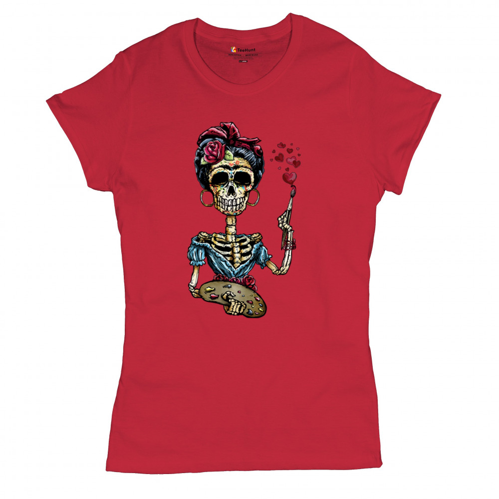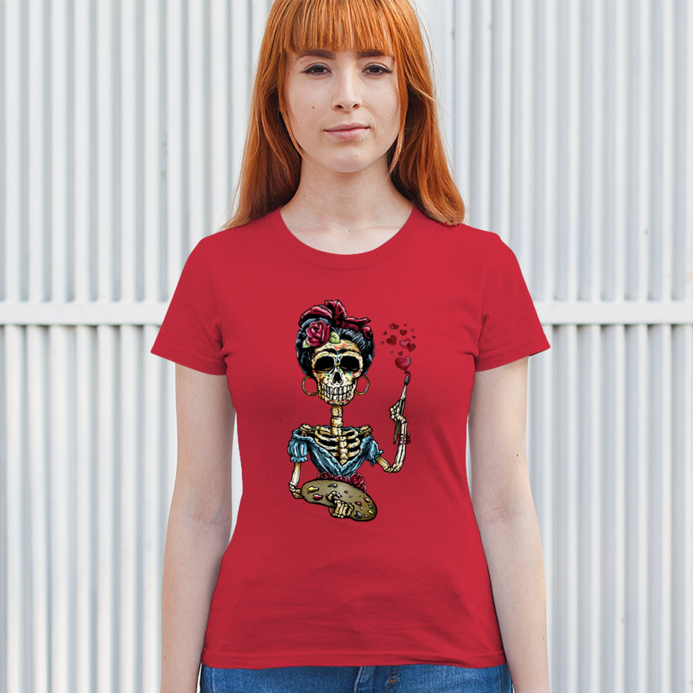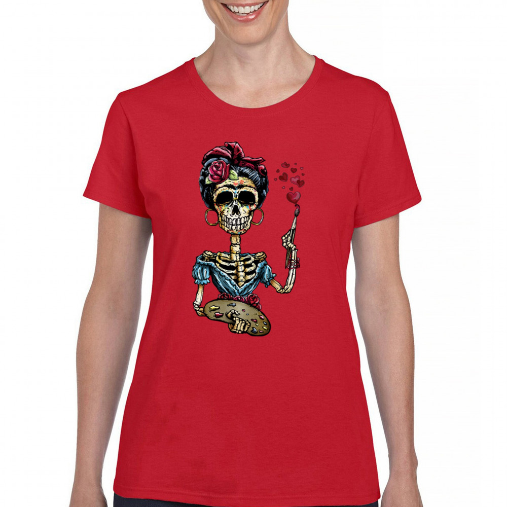 FRIDA KAHLO SUGAR SKULL t-shirt calavera mexican day of the dead women's tee red