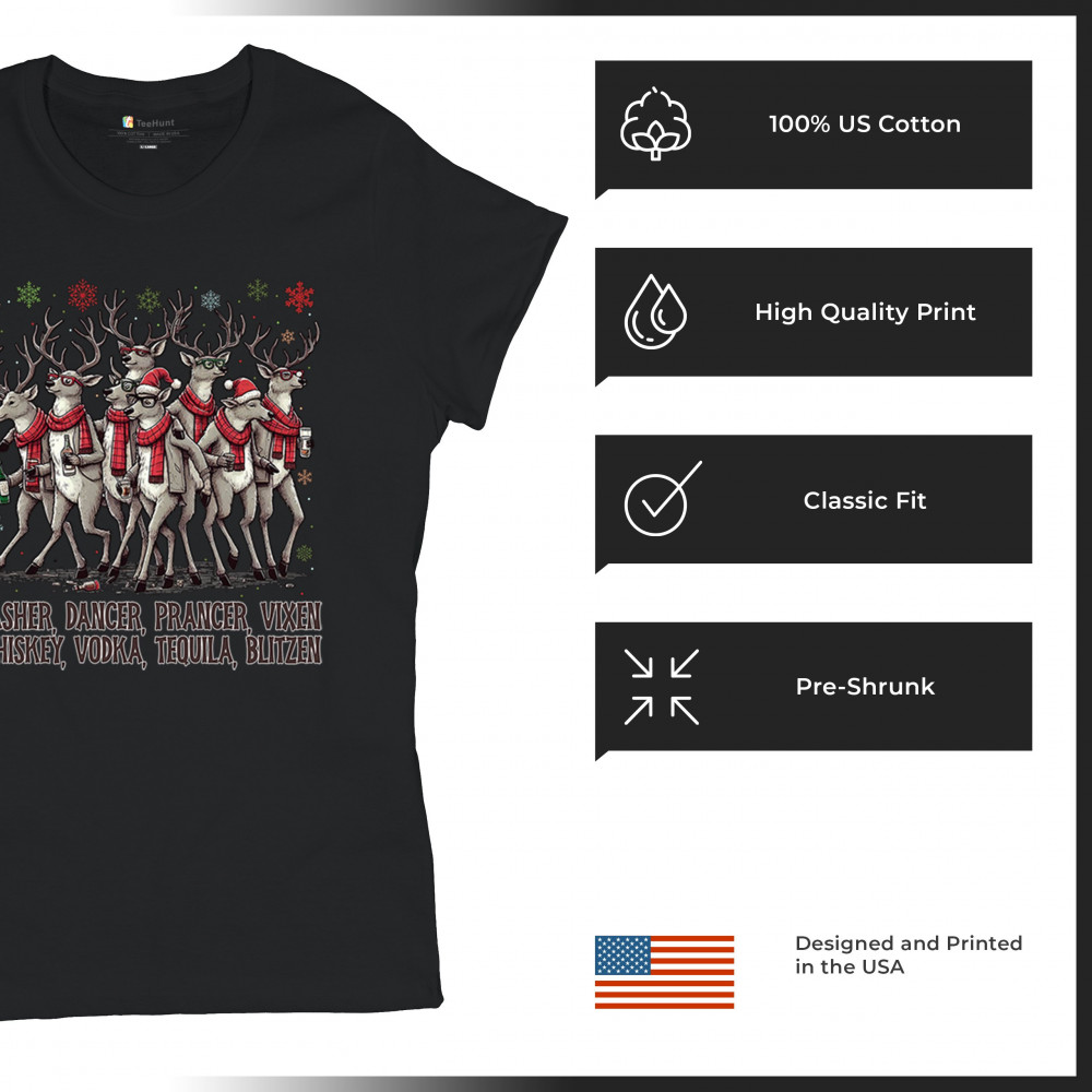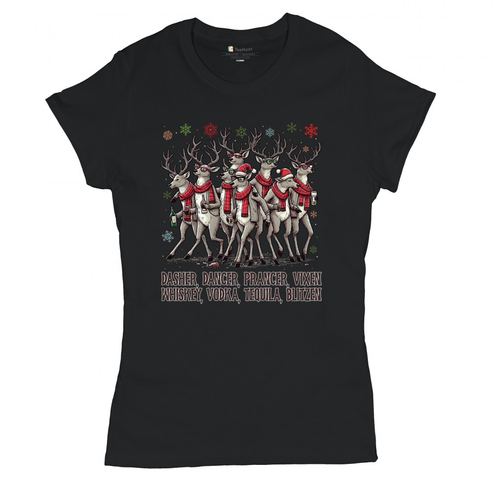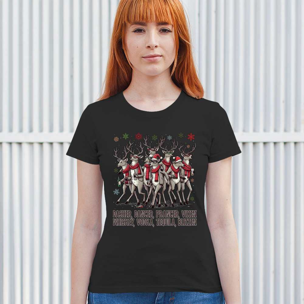 Funny drinking-reindeer Christmas design perfect for parties, bar crawls, and festive adult humor. Great for holiday laughs and spirited winter fun.