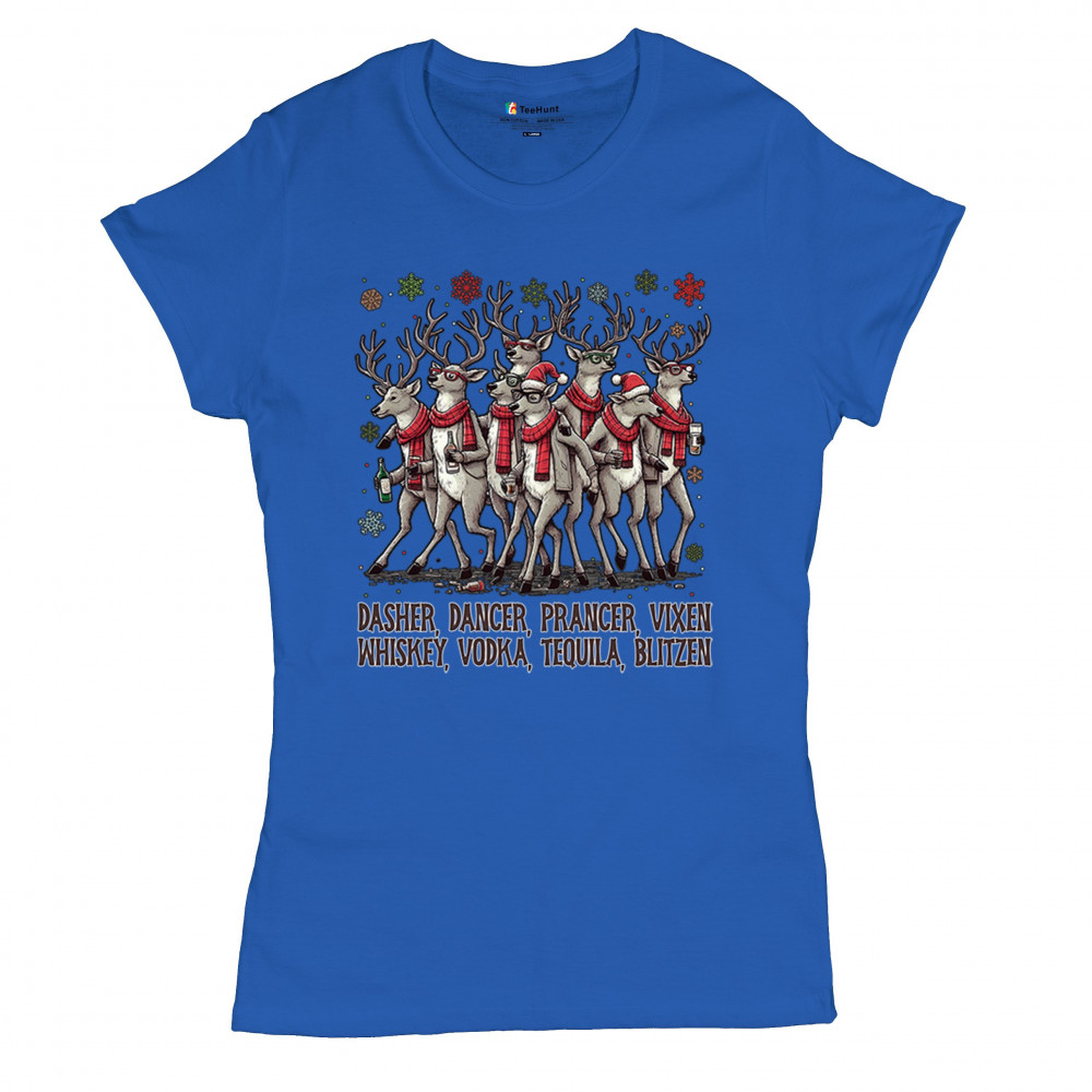This funny holiday design features a squad of drinking reindeer carrying bottles and dressed in scarves for the ultimate Christmas party vibe. Great for bar crawls, office parties, winter gatherings, adult holiday events, white elephant exchanges, festive nights out, and anyone who loves spirited Christmas humor with a cheeky personality.