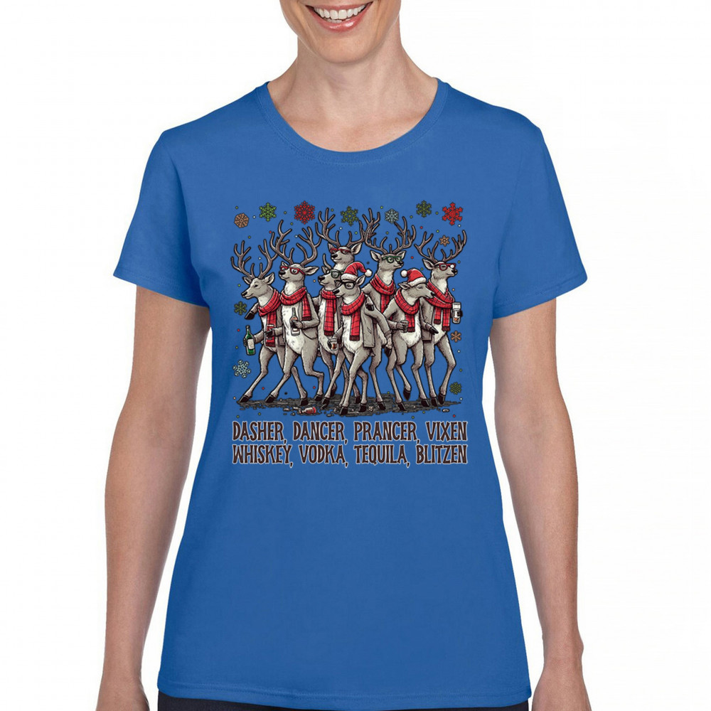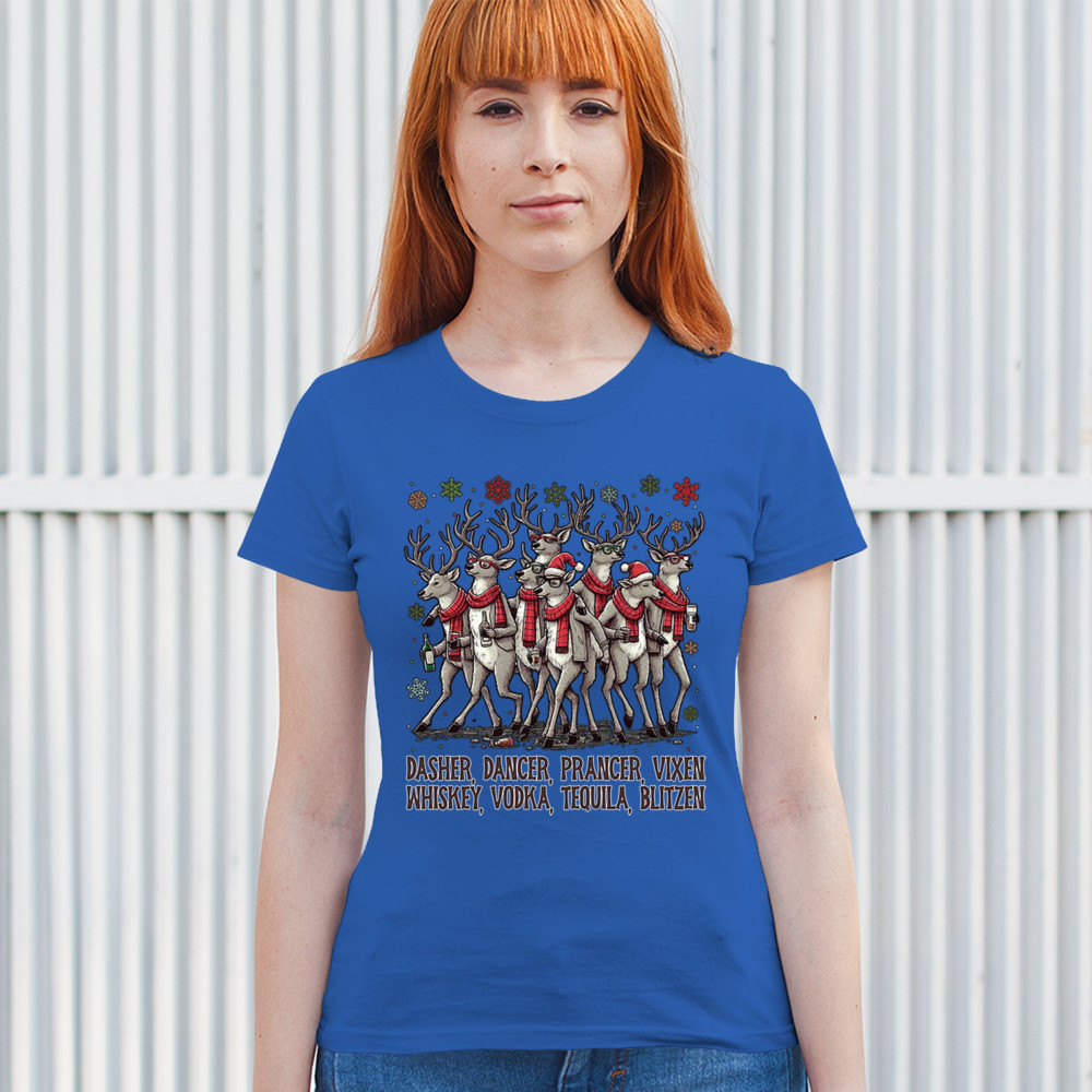 Funny drinking-reindeer Christmas design perfect for parties, bar crawls, and festive adult humor. Great for holiday laughs and spirited winter fun.