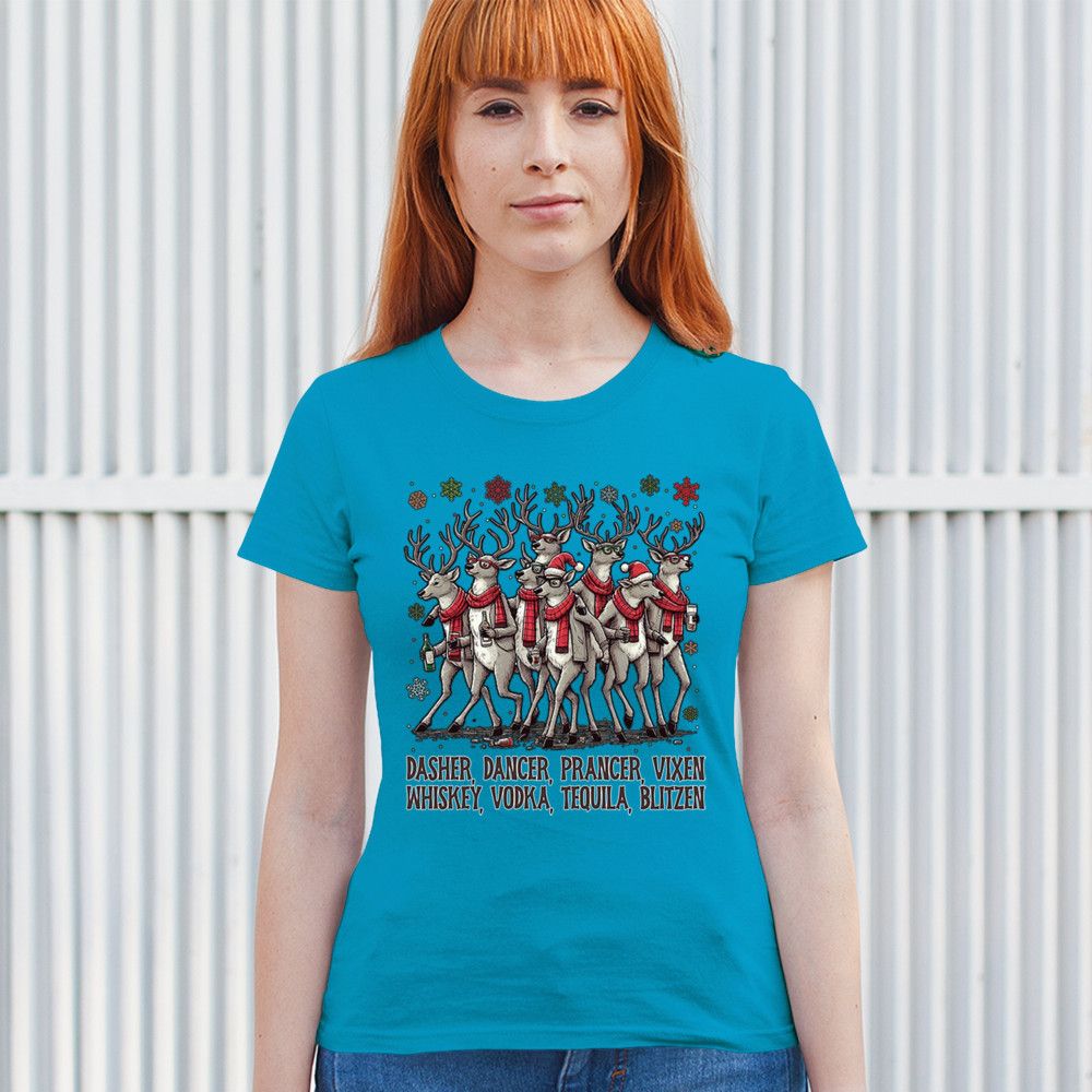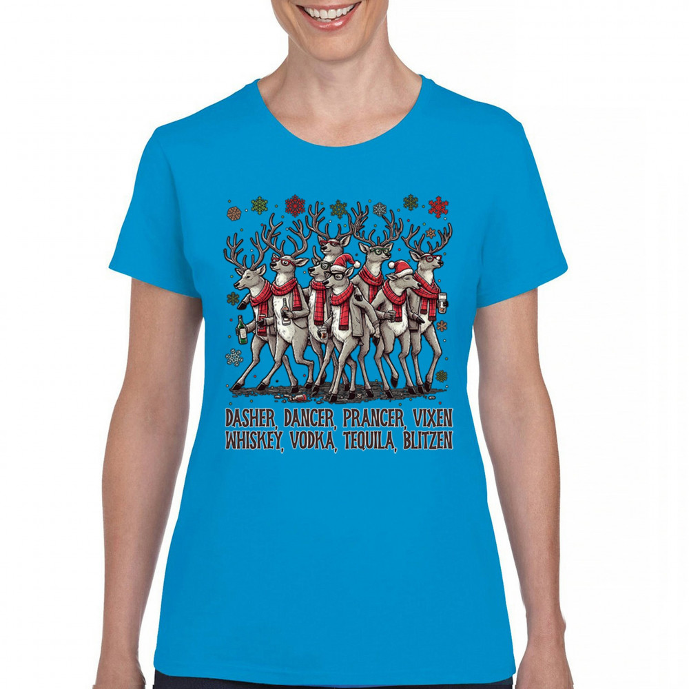 Funny drinking-reindeer Christmas design perfect for parties, bar crawls, and festive adult humor. Great for holiday laughs and spirited winter fun.