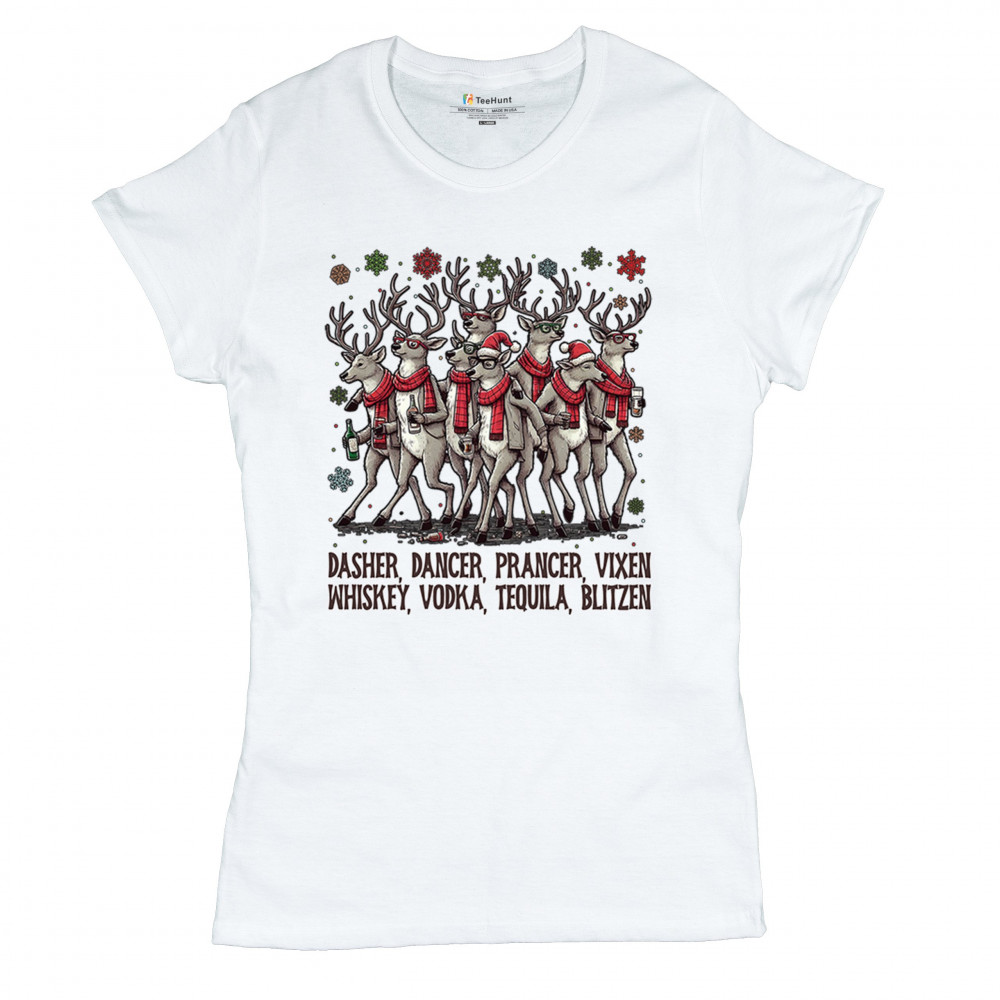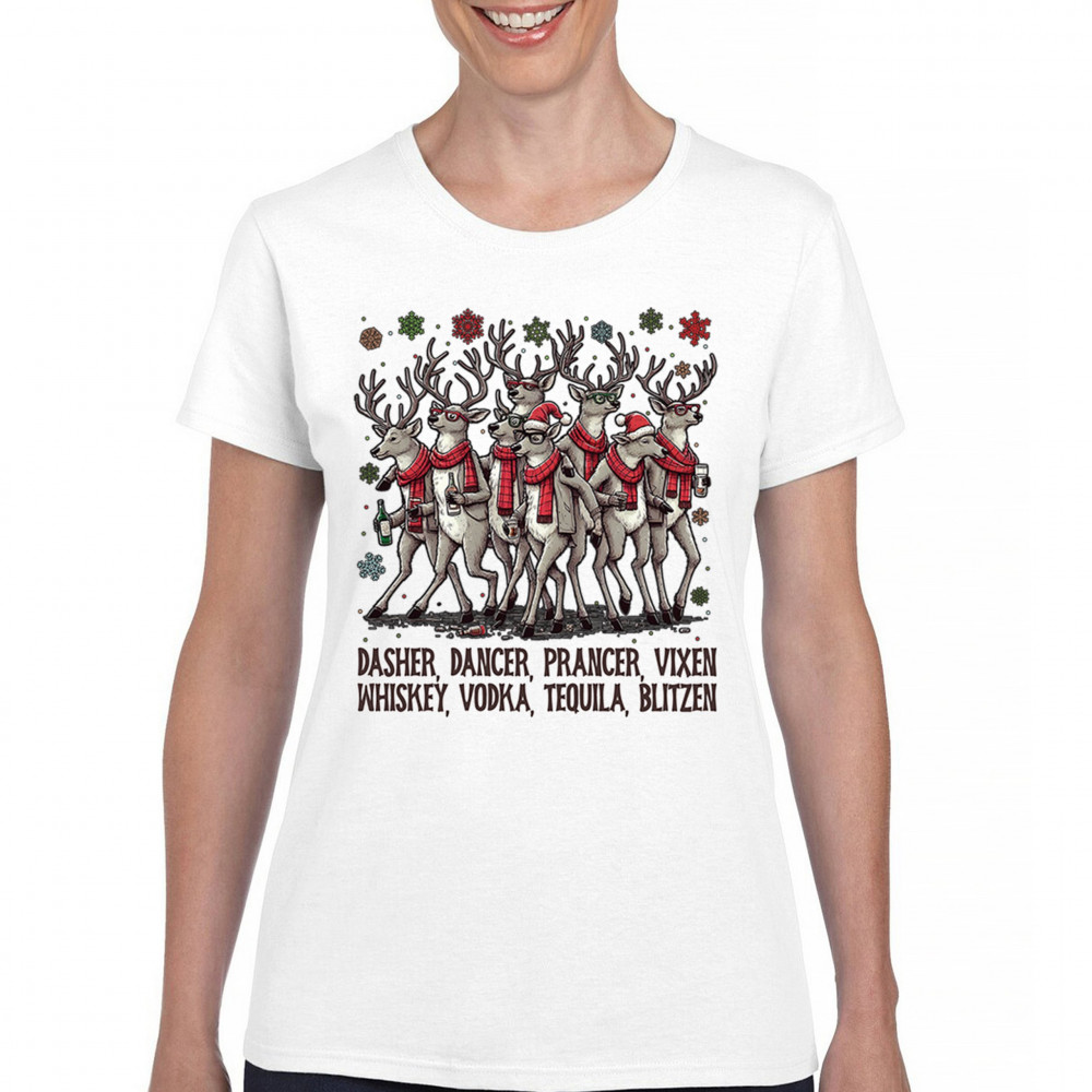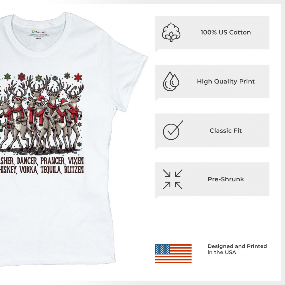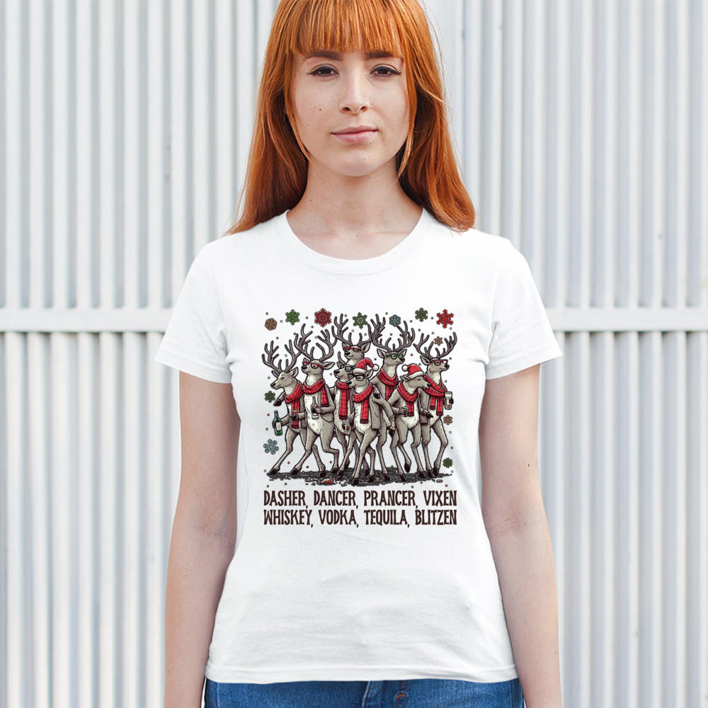 Funny drinking-reindeer Christmas design perfect for parties, bar crawls, and festive adult humor. Great for holiday laughs and spirited winter fun.