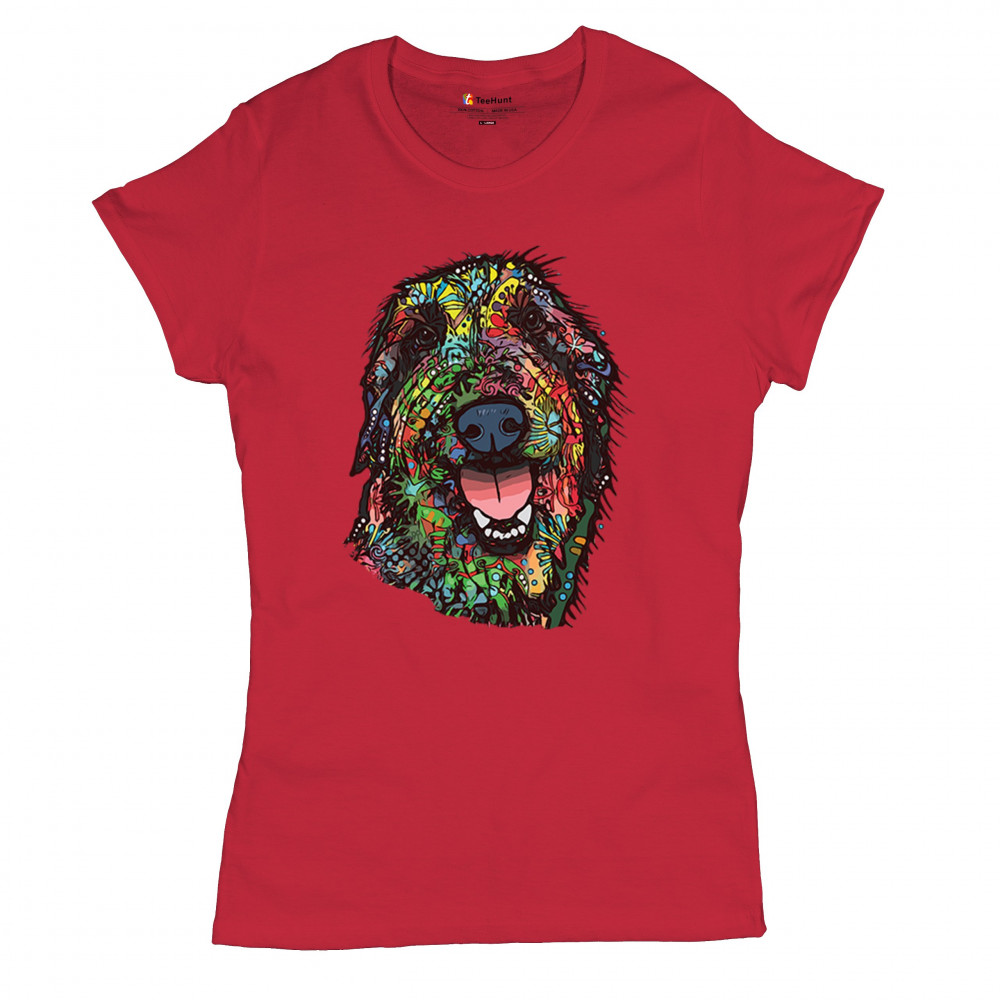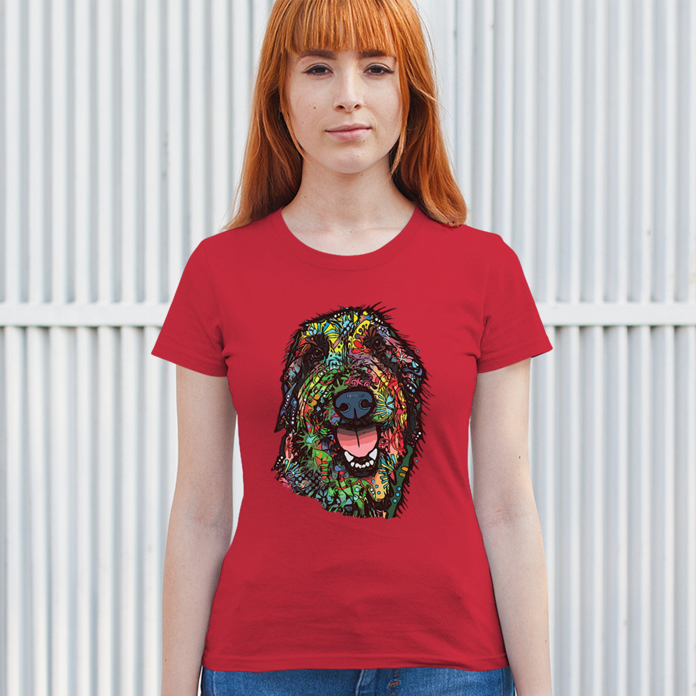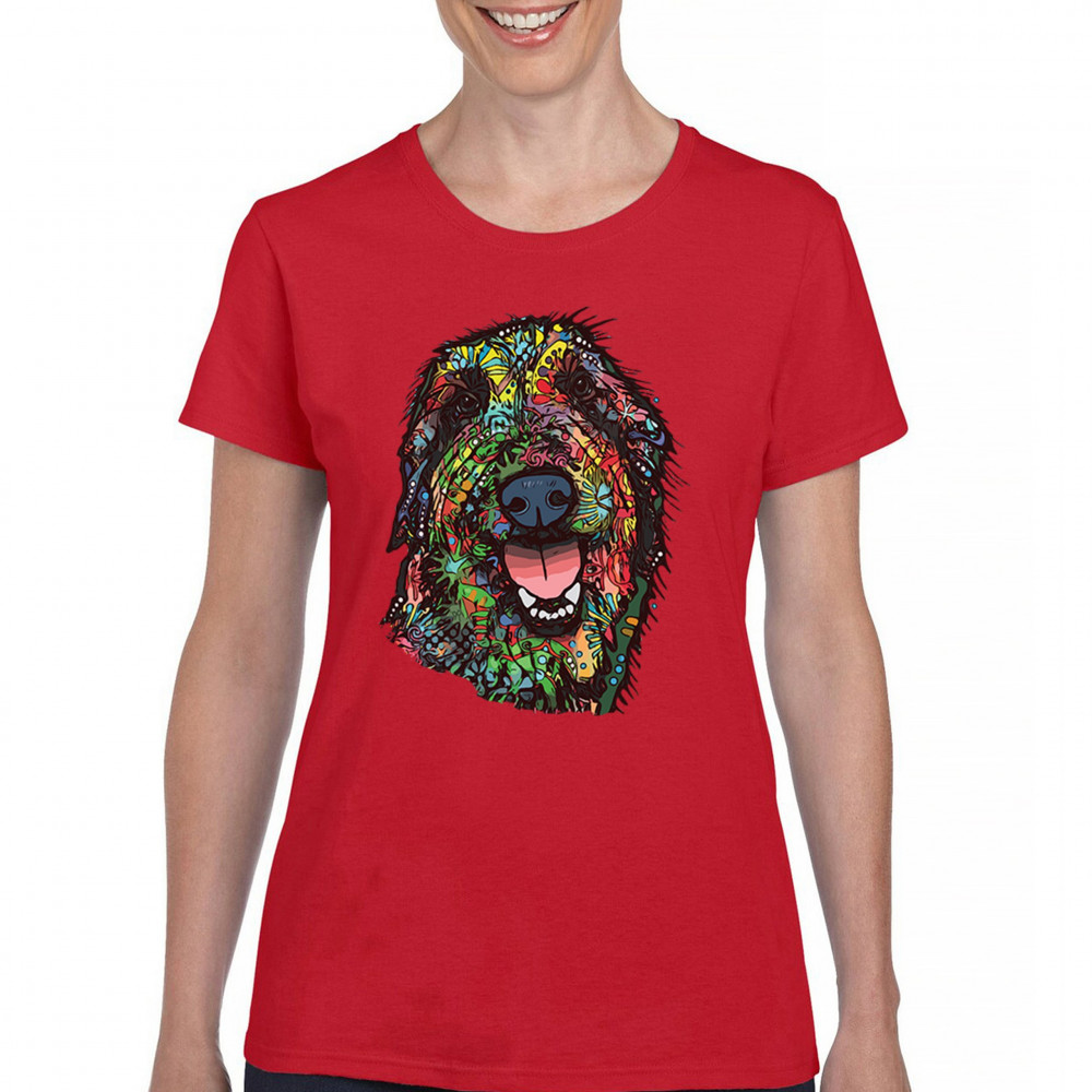 FUNNY FEELING HAPPY DOG FACE t-shirt dean russo cheerful pet women's tee red