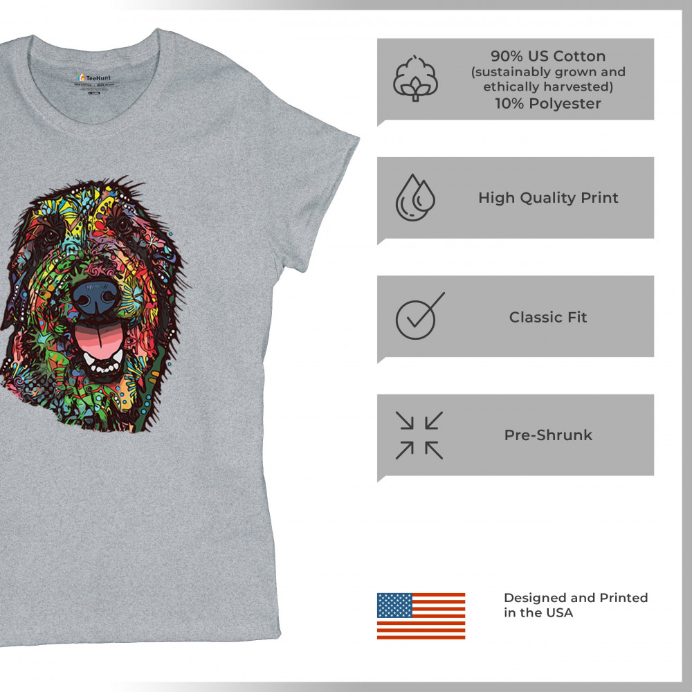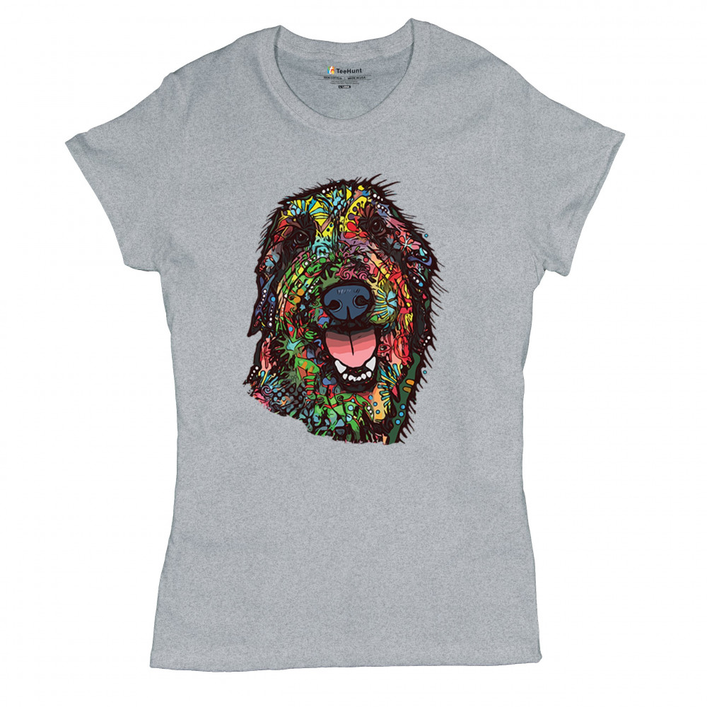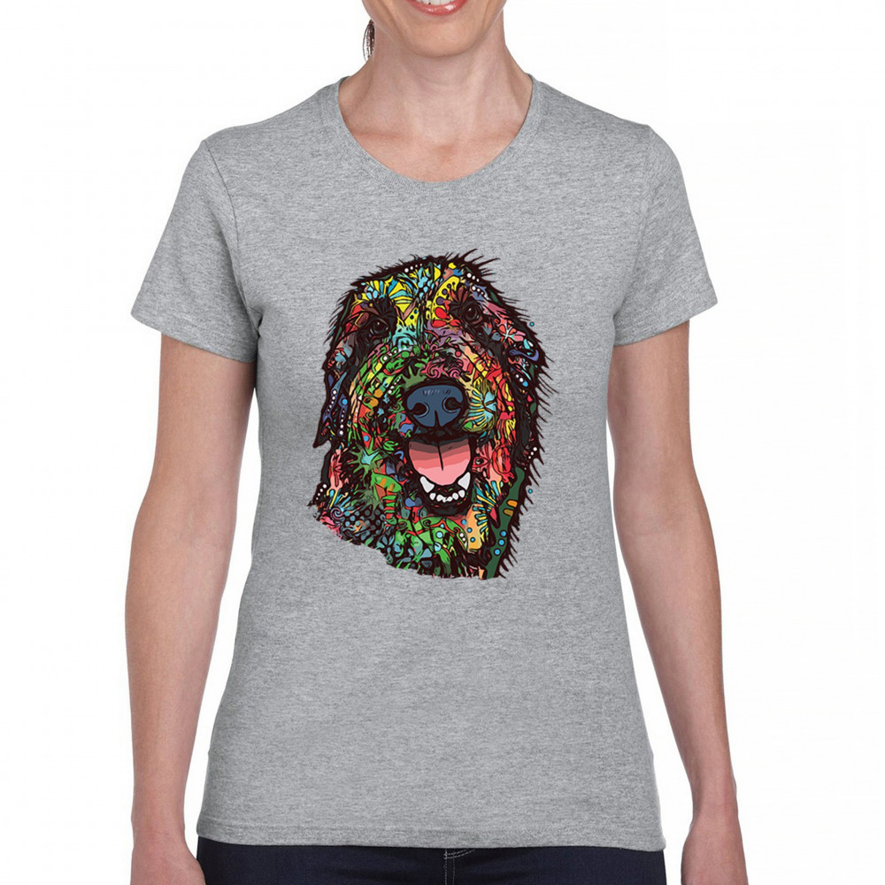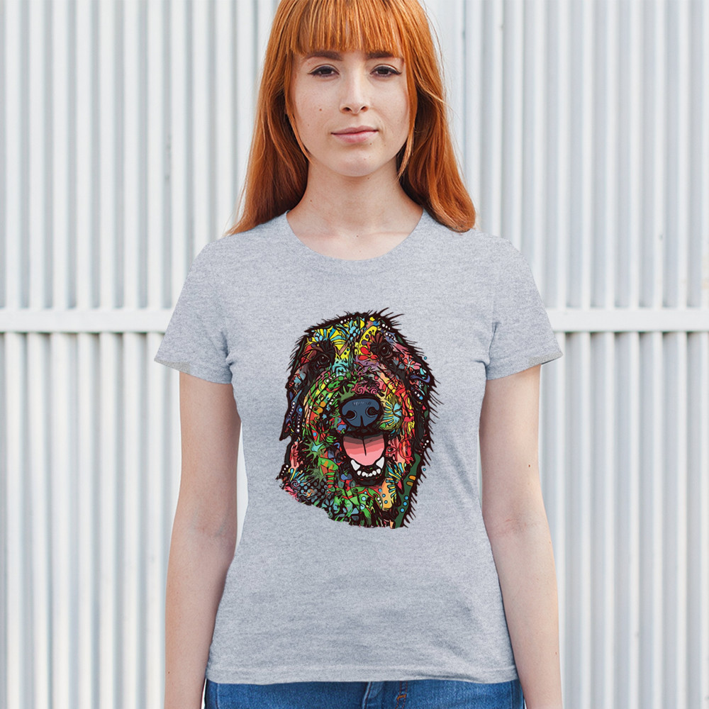 FUNNY FEELING HAPPY DOG FACE t-shirt dean russo cheerful pet women's tee gray