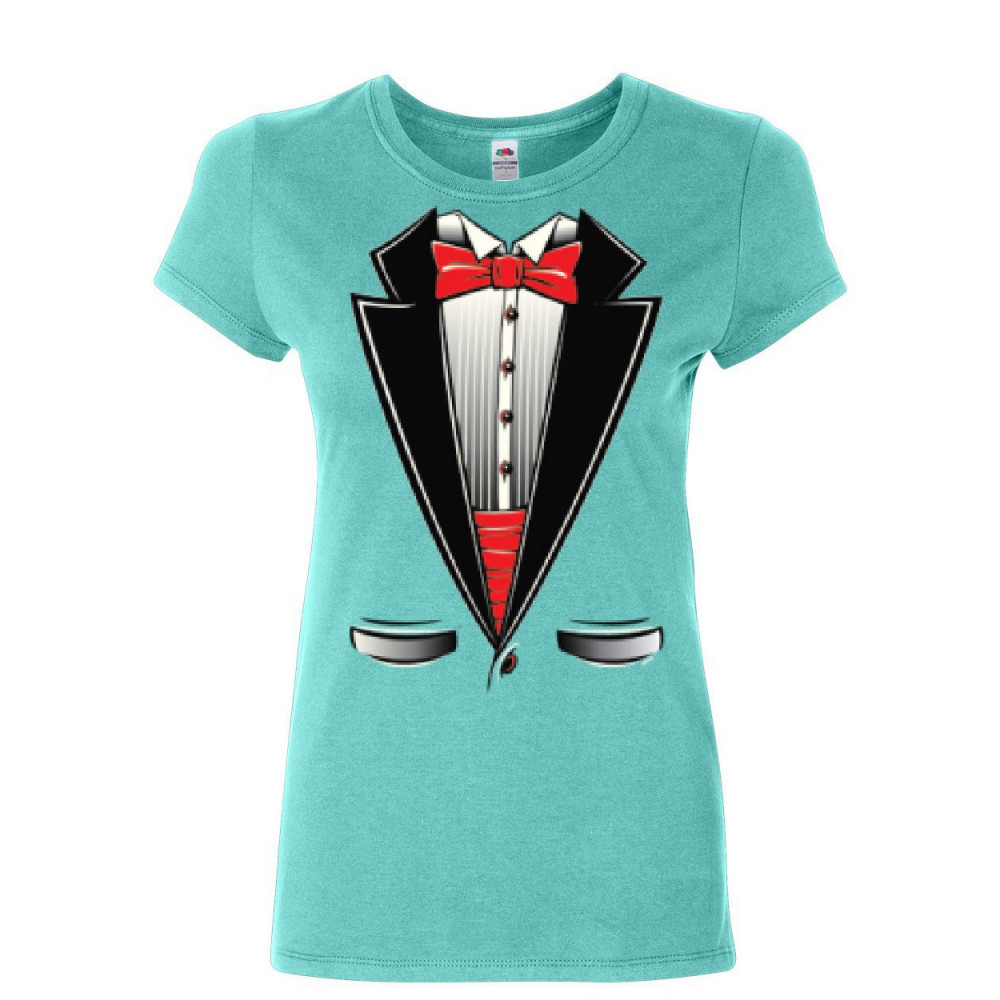 FUNNY TUXEDO BOW TIE cotton t-shirt tux wedding party light blue