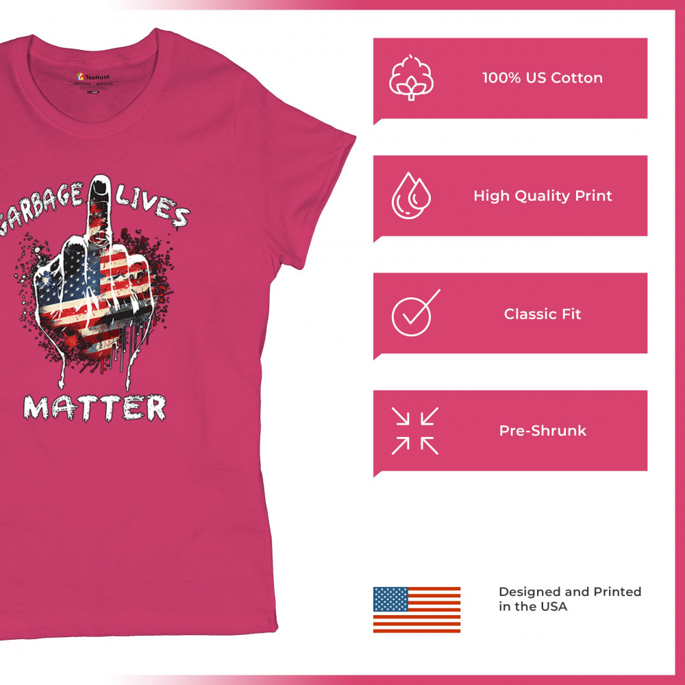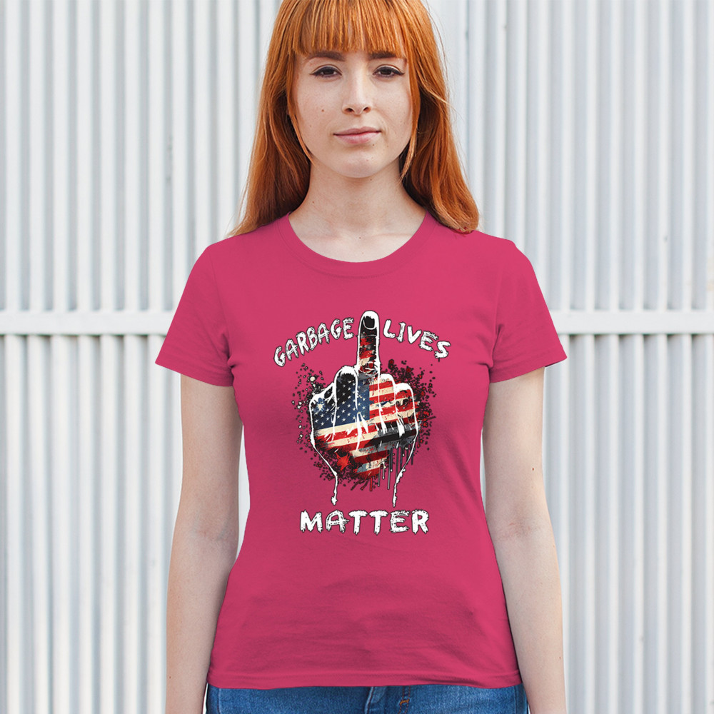 The "Garbage Lives Matter" design is a fearless expression of American values and pride. With the American flag as its centerpiece, this bold and patriotic design speaks volumes to Trump supporters, conservatives, and those who believe in the people's mandate. Join the fight for America First, never surrender, and celebrate the Red Wave movement with this striking statement piece.