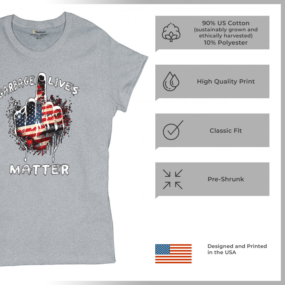 The "Garbage Lives Matter" design is a fearless expression of American values and pride. With the American flag as its centerpiece, this bold and patriotic design speaks volumes to Trump supporters, conservatives, and those who believe in the people's mandate. Join the fight for America First, never surrender, and celebrate the Red Wave movement with this striking statement piece.