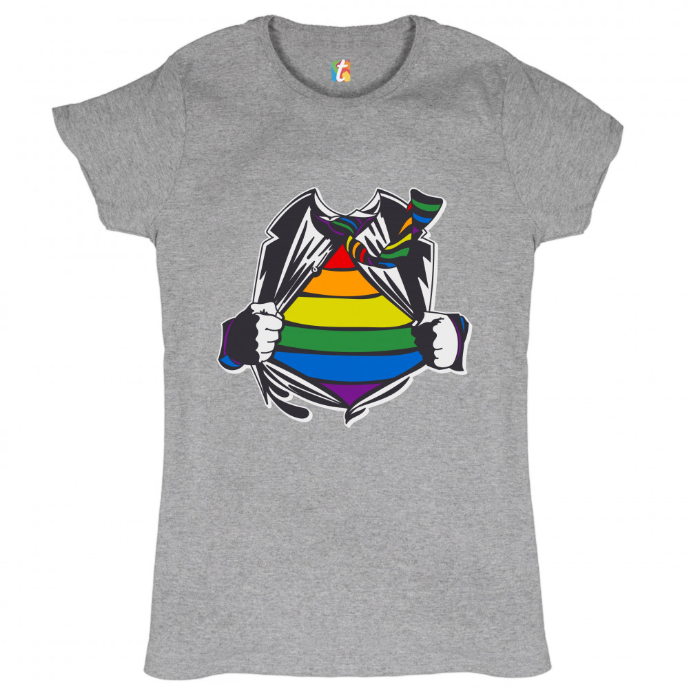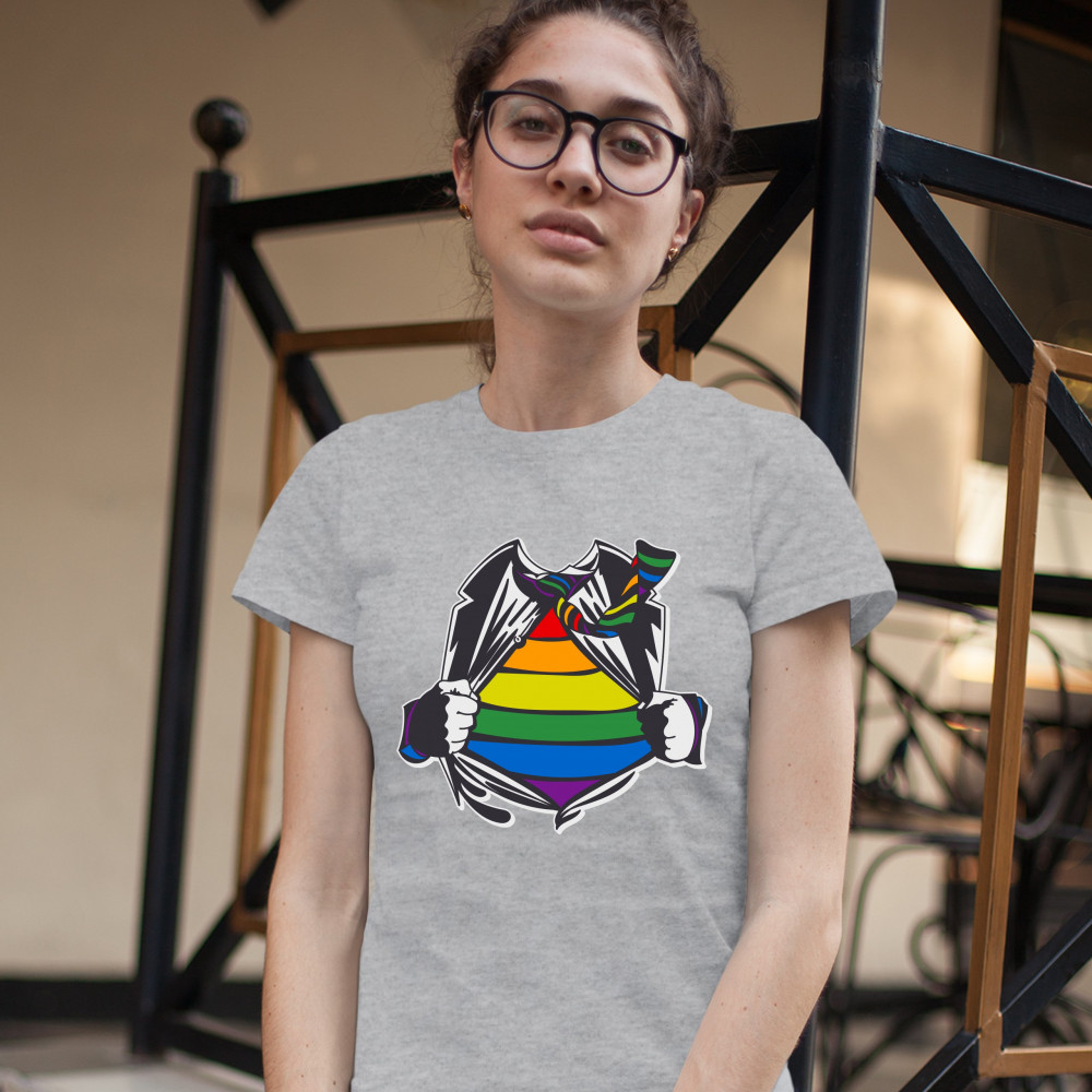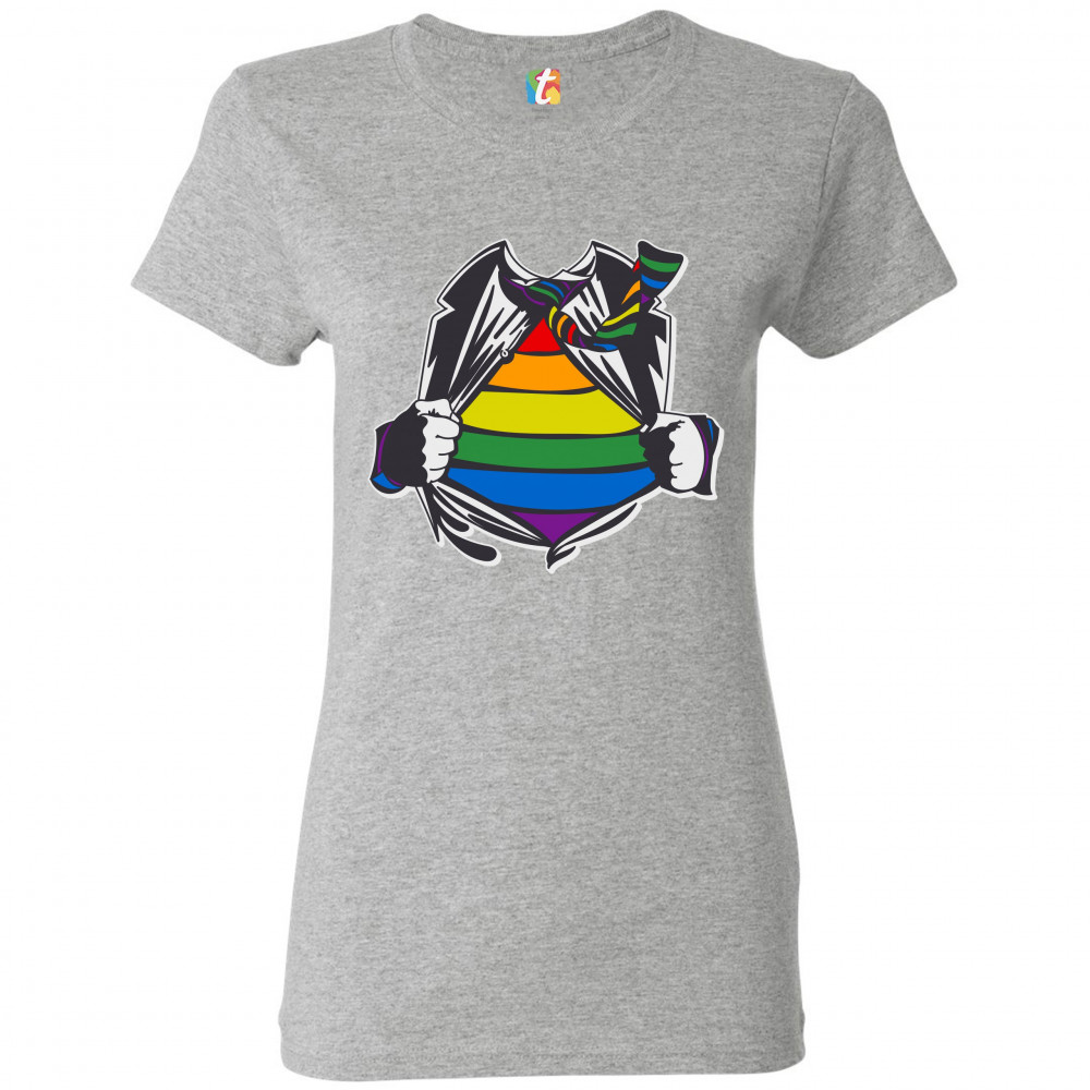 GAY SUPERHERO PARODY t-shirt lesbian bi transgender pride rainbow women's tee gray