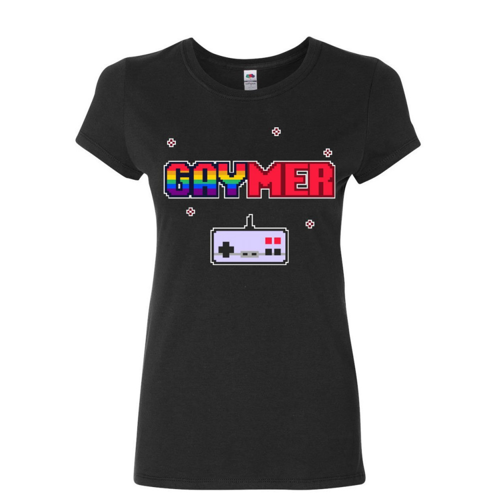 QUEER GAYMER CONTROLLER gaymer women's t-shirt lgbt queer rainbow gay gaming console controller shirt black