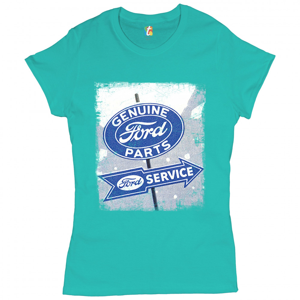 GENUINE FORD PARTS t-shirt high performance american made licensed women's tee light blue