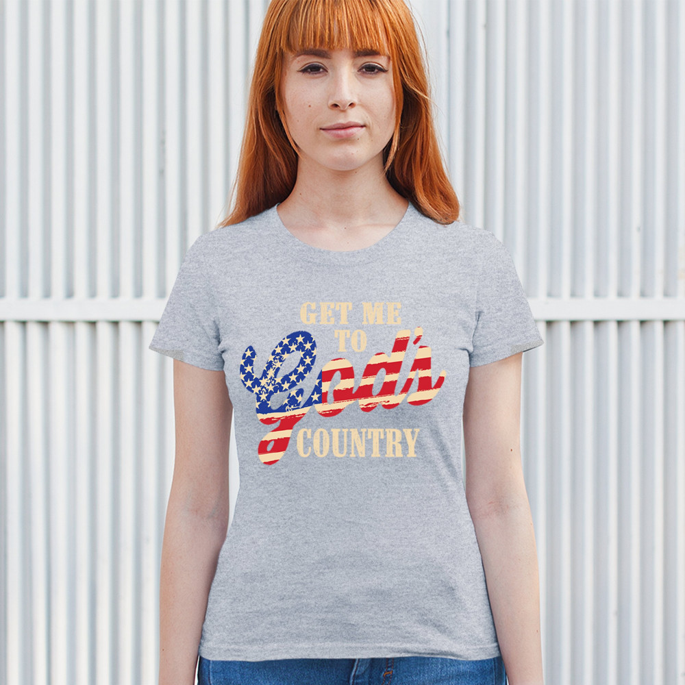 Bold patriotic faith shirt featuring USA flag text. Great for rural life, Christian pride, believers, and country-loving Americans.
