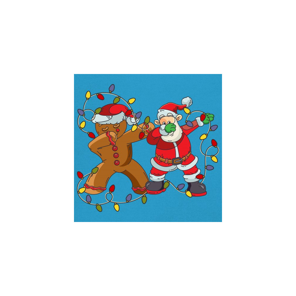 A funny print featuring a gingerbread man and Santa Claus dab dancing while surrounded by Christmas lights. Amazing choice to make people smile and spread positive vibes on Christmas Eve.