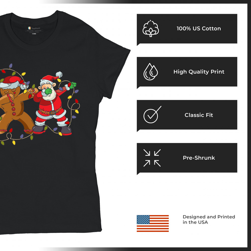 GINGERBREAD MAN AND SANTA CLAUS DAB DANCE t-shirt merry christmas women's tee black