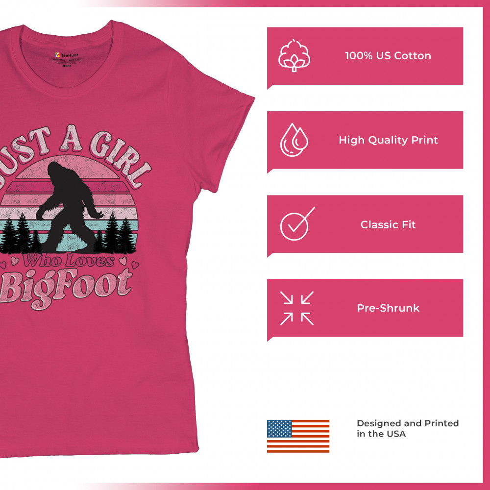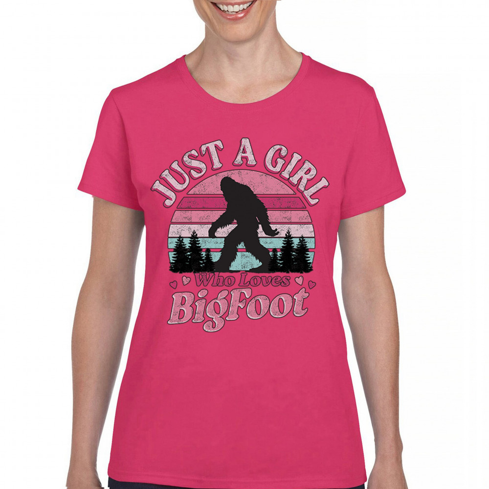 Fun cryptid design with retro pink sunset for Bigfoot-loving girls, campers, explorers, and paranormal fans. Cute and playful gift idea!