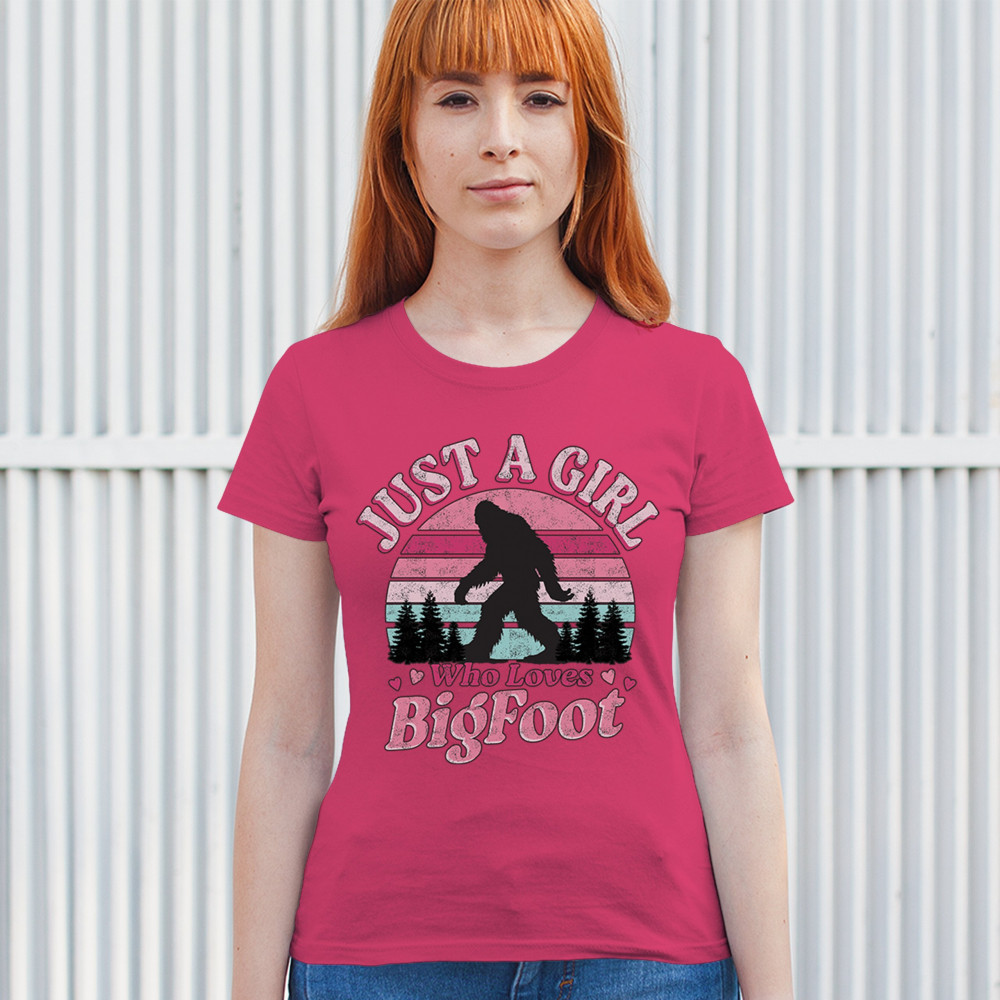 Celebrate your love for all things cryptid with this cute and retro Bigfoot design. Perfect for girls obsessed with Sasquatch, this playful graphic features a pink and teal sunset, ideal for fans, campers, explorers, and believers. A fun gift for paranormal lovers and outdoorsy adventurers alike.
