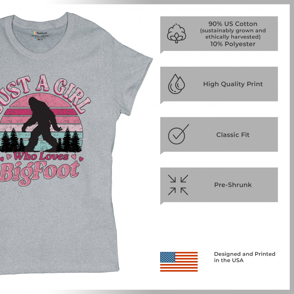 Fun cryptid design with retro pink sunset for Bigfoot-loving girls, campers, explorers, and paranormal fans. Cute and playful gift idea!