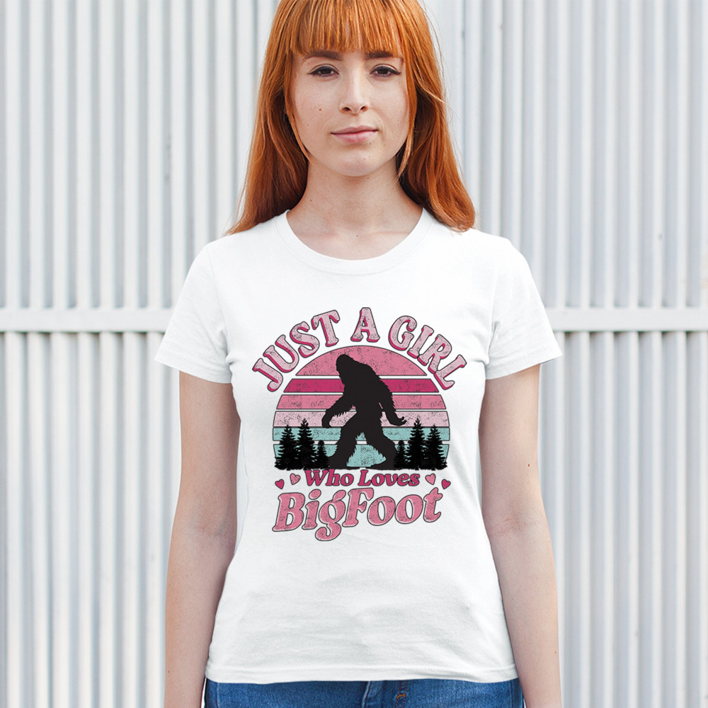 Celebrate your love for all things cryptid with this cute and retro Bigfoot design. Perfect for girls obsessed with Sasquatch, this playful graphic features a pink and teal sunset, ideal for fans, campers, explorers, and believers. A fun gift for paranormal lovers and outdoorsy adventurers alike.